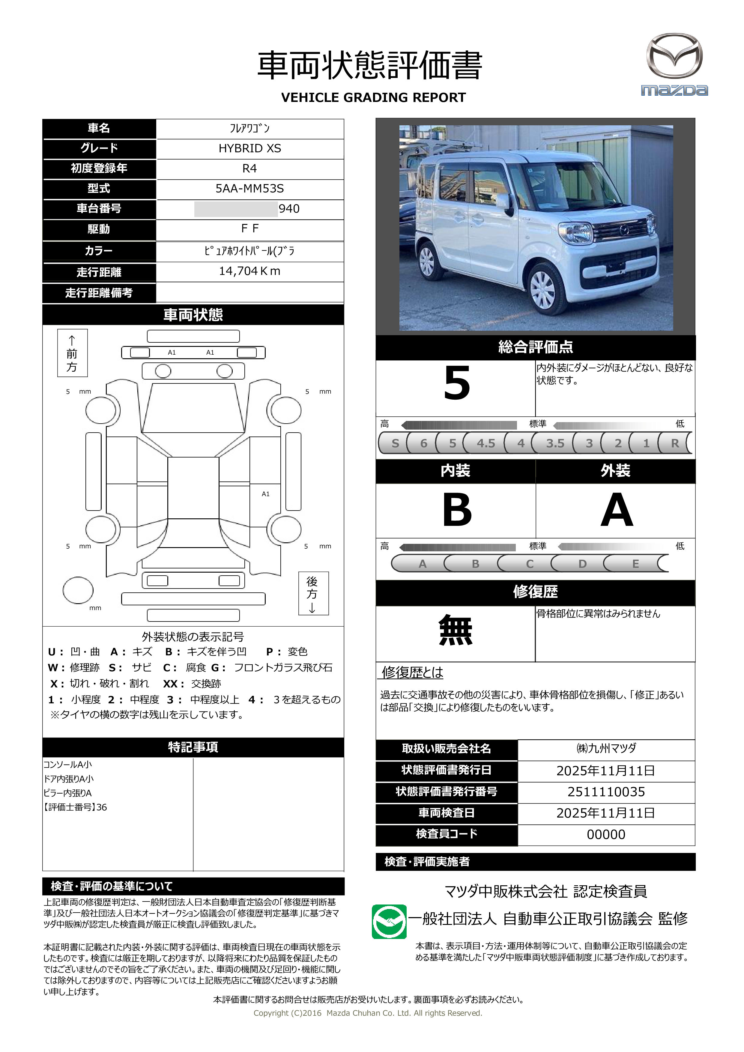 | 車両状態評価書 | ※クリックすると開きます![]() |