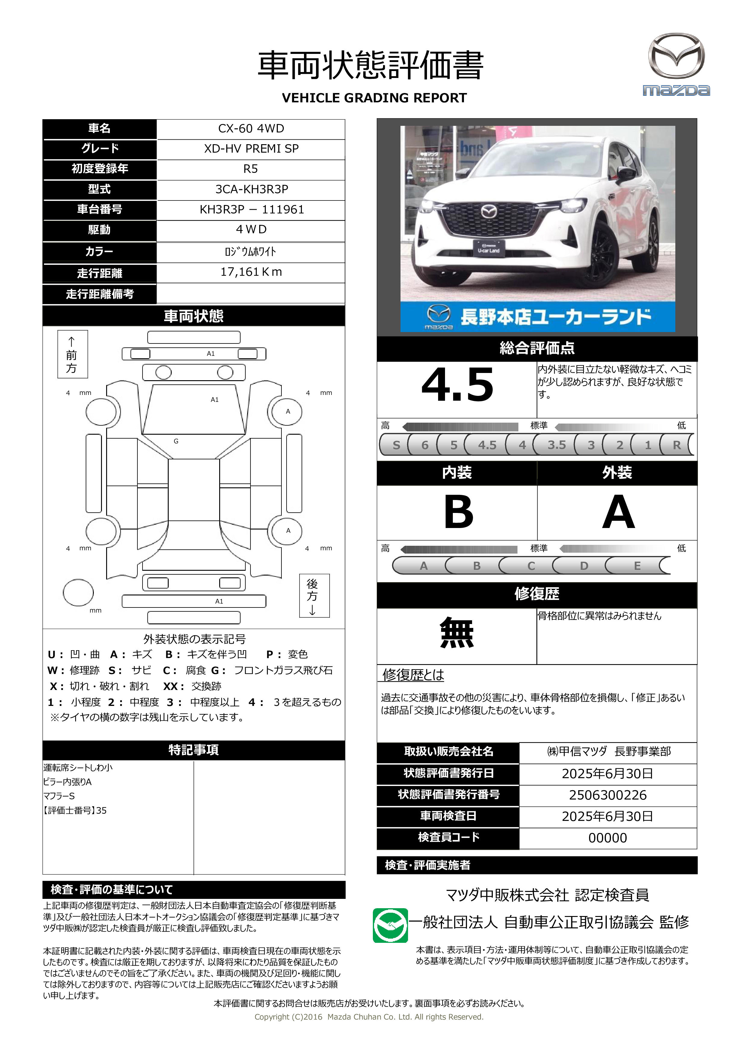 | 車両状態評価書 | ※クリックすると開きます![]() |