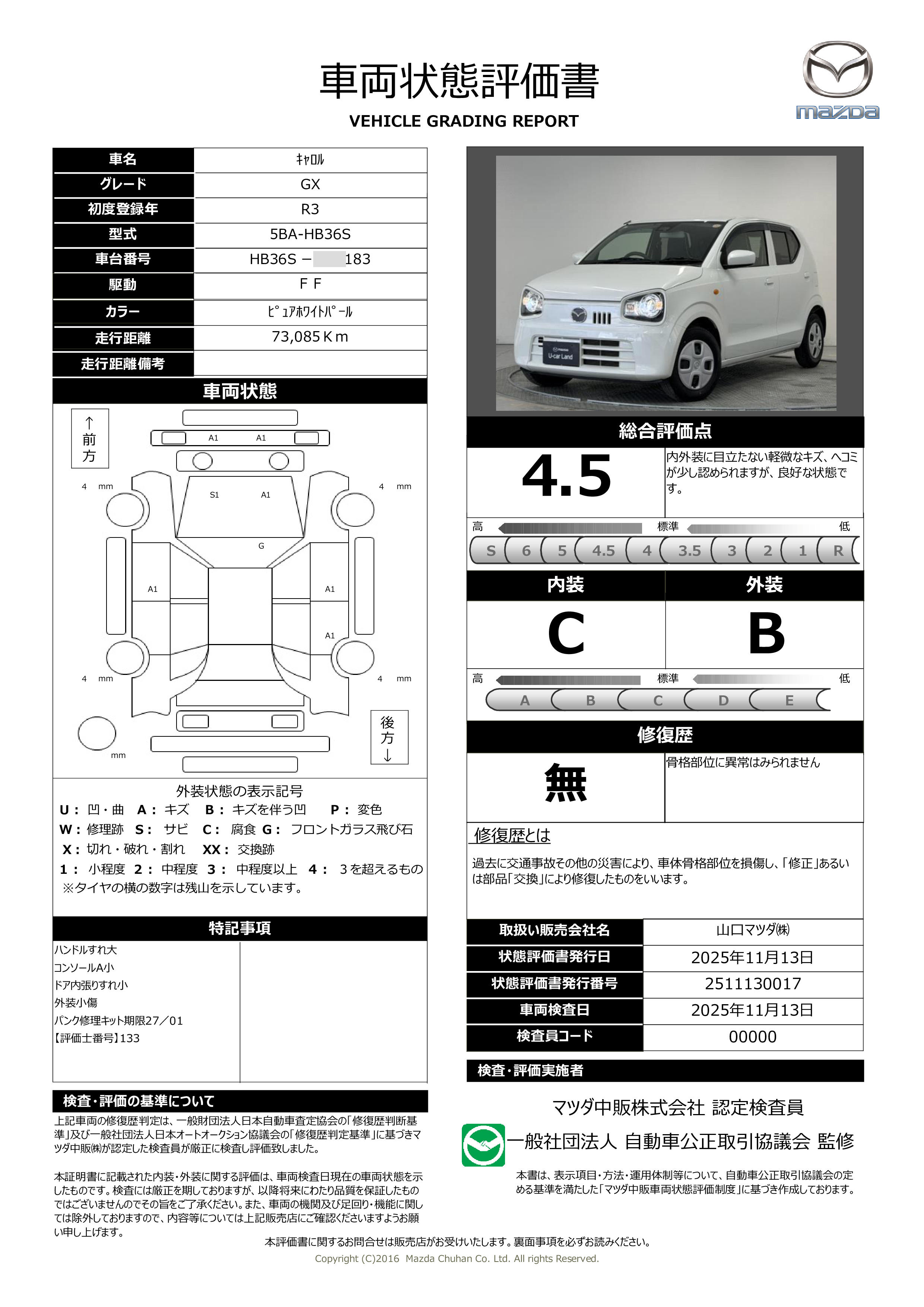 | 車両状態評価書 | ※クリックすると開きます![]() |