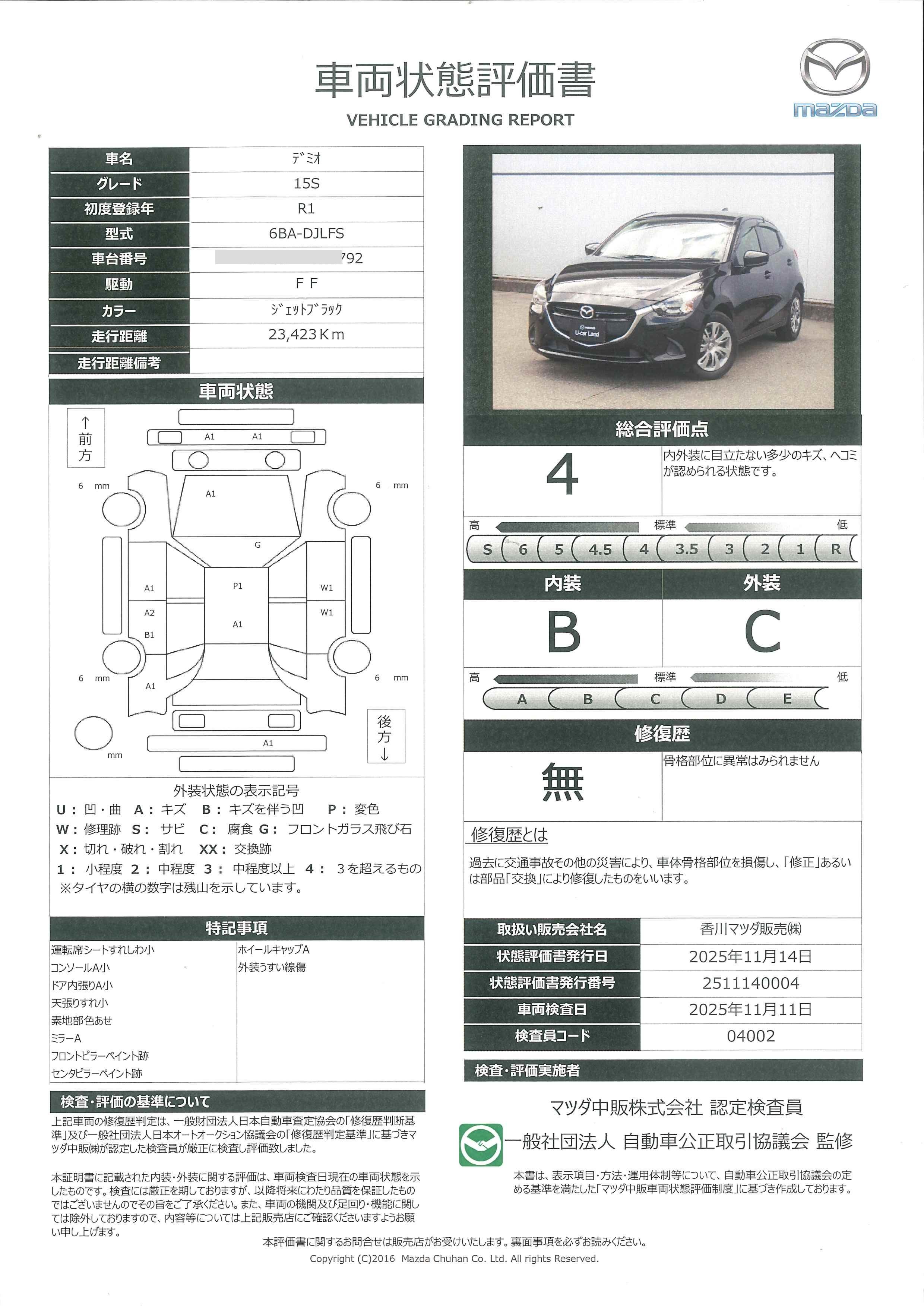 | 車両状態評価書 | ※クリックすると開きます![]() |