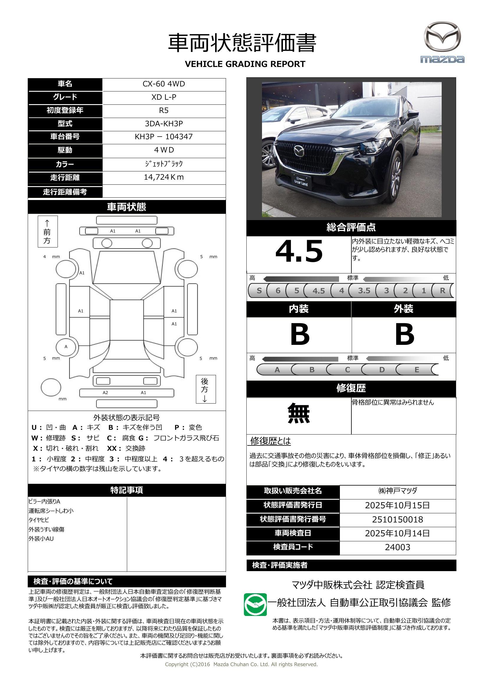 車両保証(CX-60 XD Lパッケージ:(株)神戸マツダ 垂水多聞店)