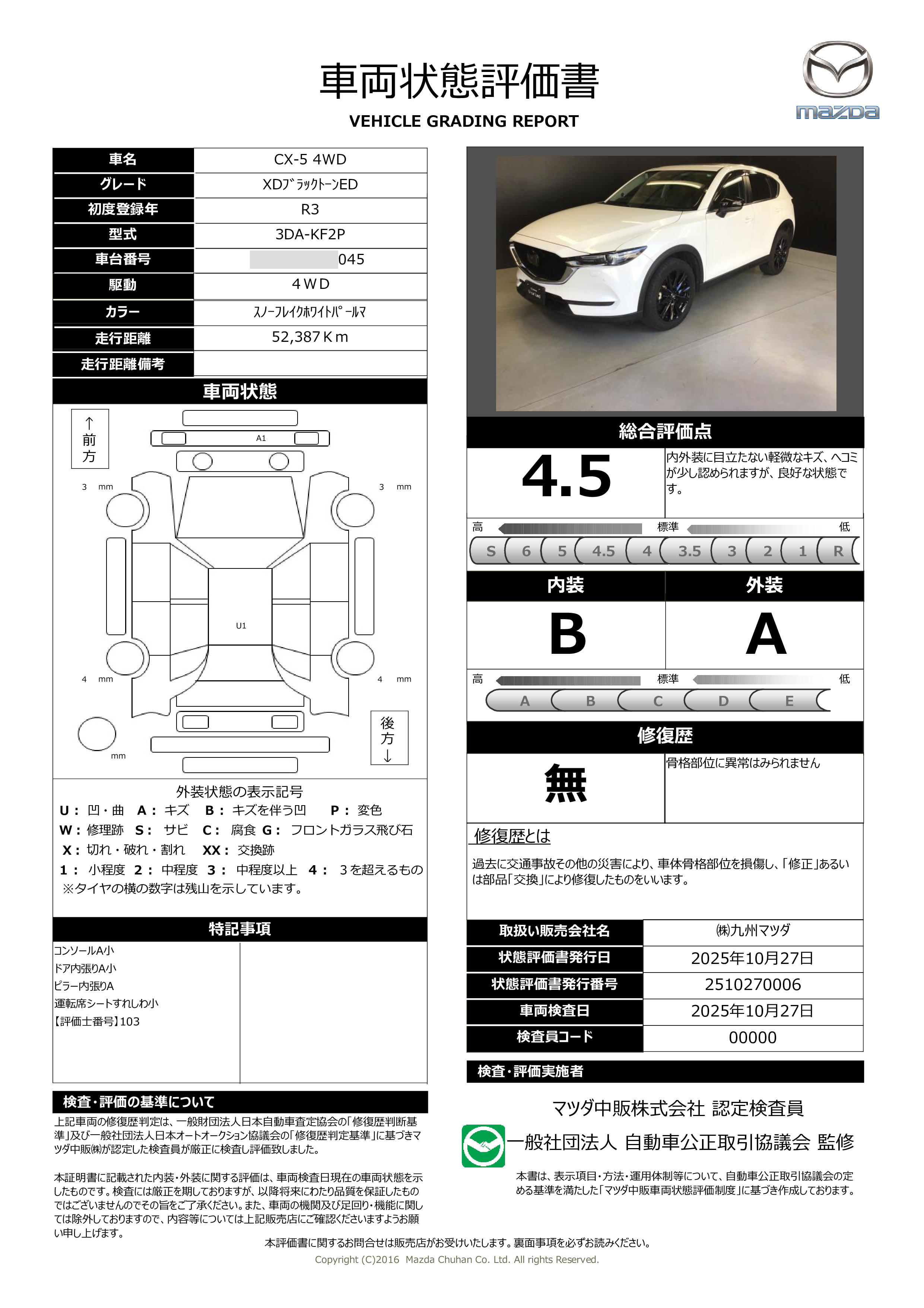 | 車両状態評価書 | ※クリックすると開きます![]() |