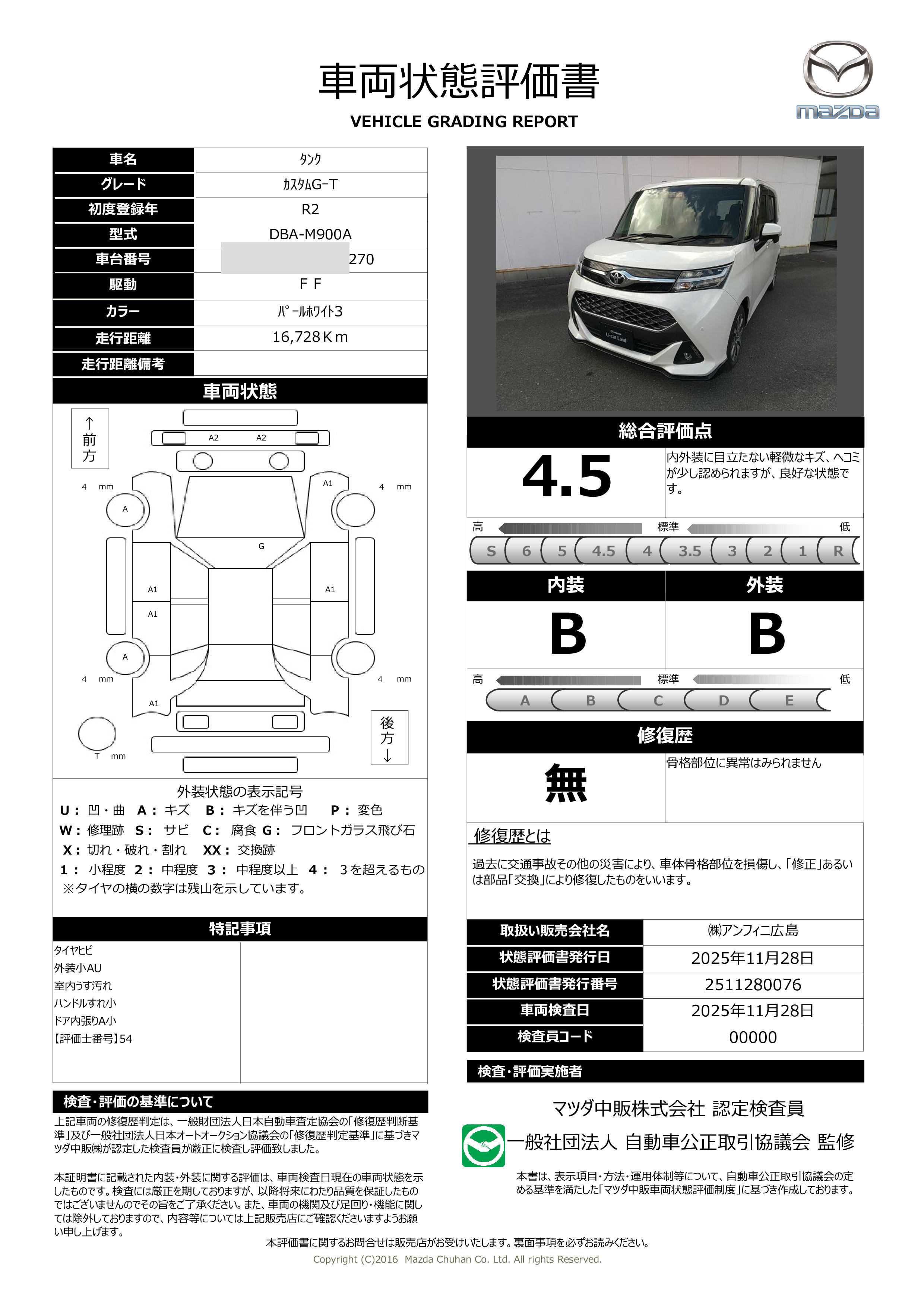 | 車両状態評価書 | ※クリックすると開きます![]() |