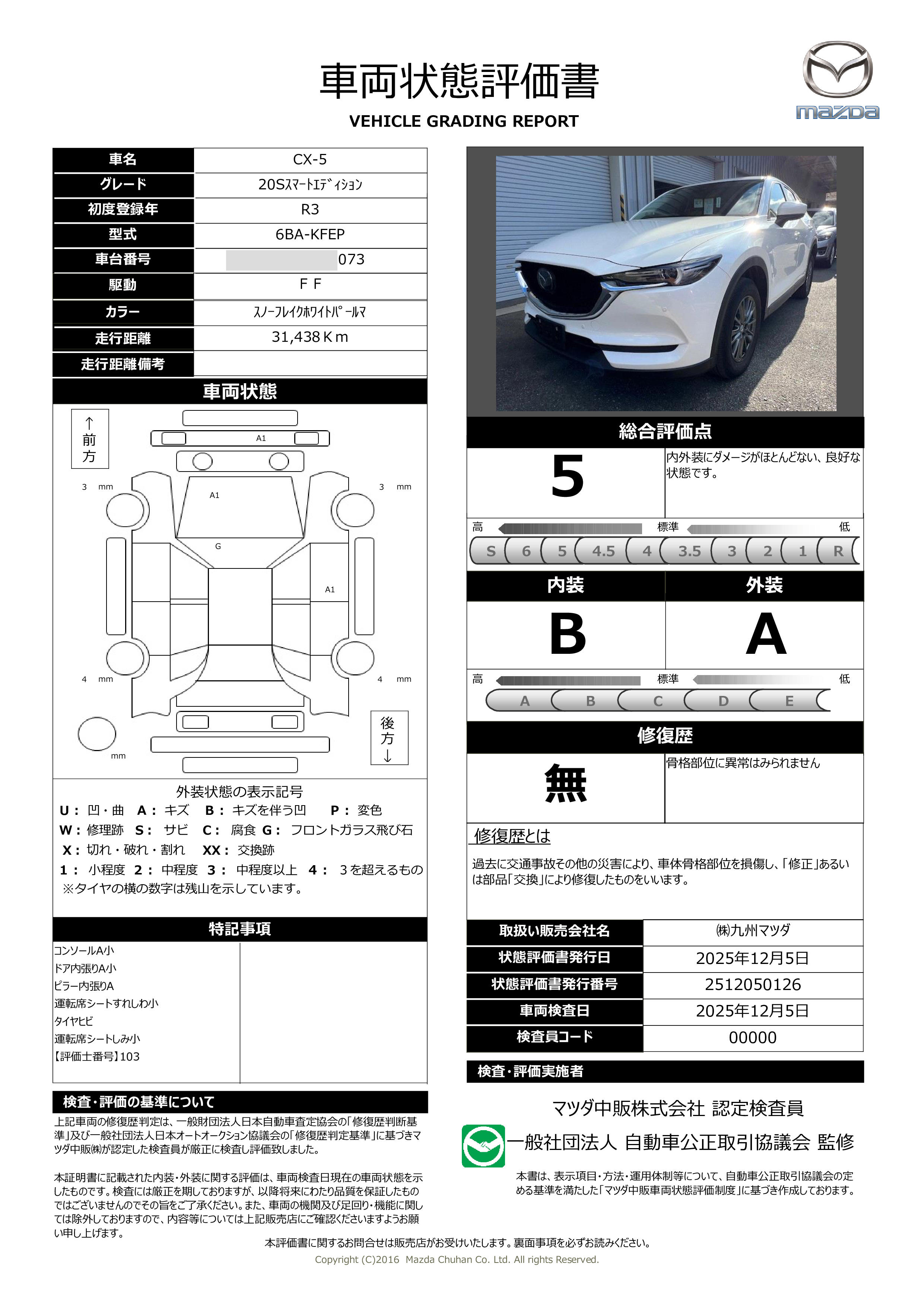 | 車両状態評価書 | ※クリックすると開きます![]() |