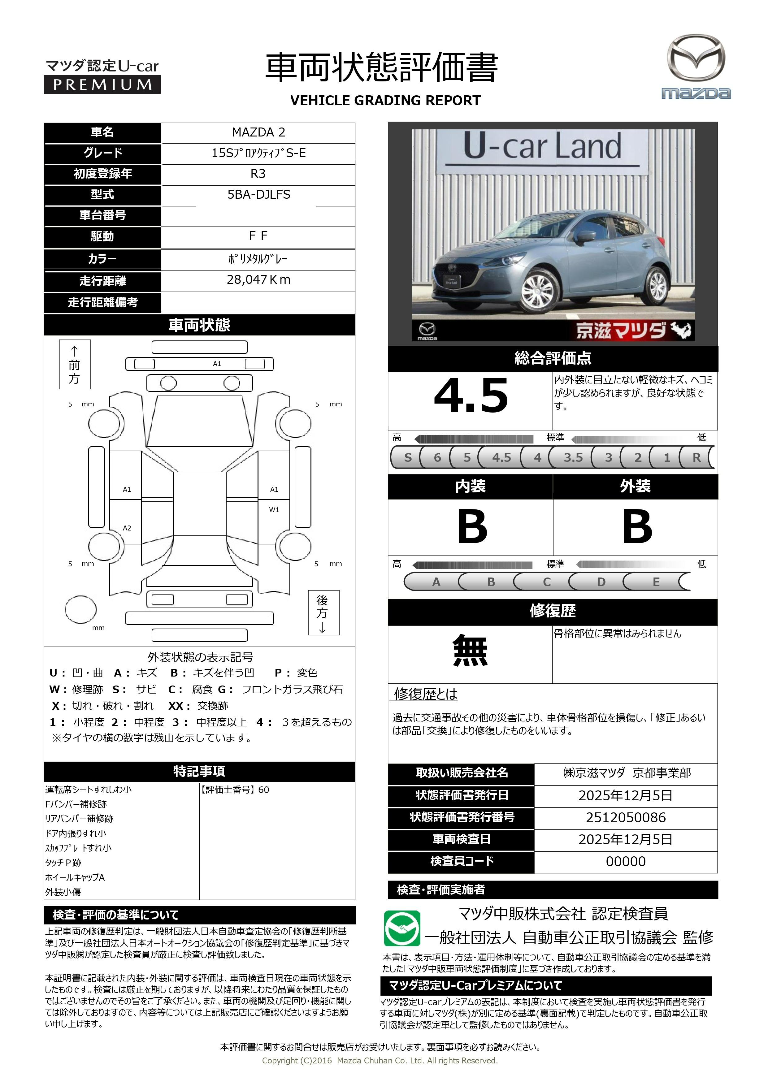 | 車両状態評価書 | ※クリックすると開きます![]() |