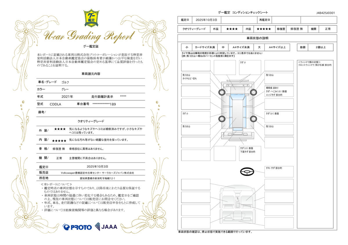 車両状態評価書 | ※クリックすると開きます![]() |