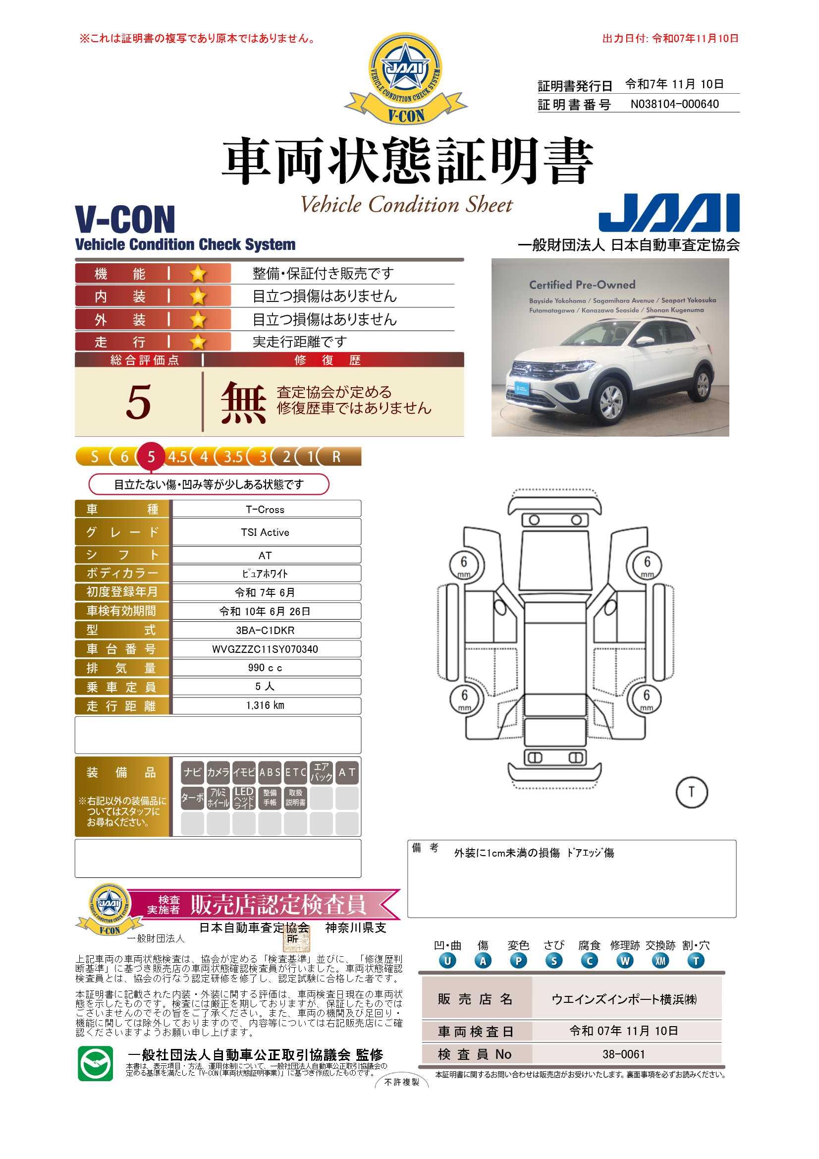 車両保証(T-クロス TSI アクティブ:フォルクスワーゲンシーポート横須賀 ウエインズインポート横浜(株))