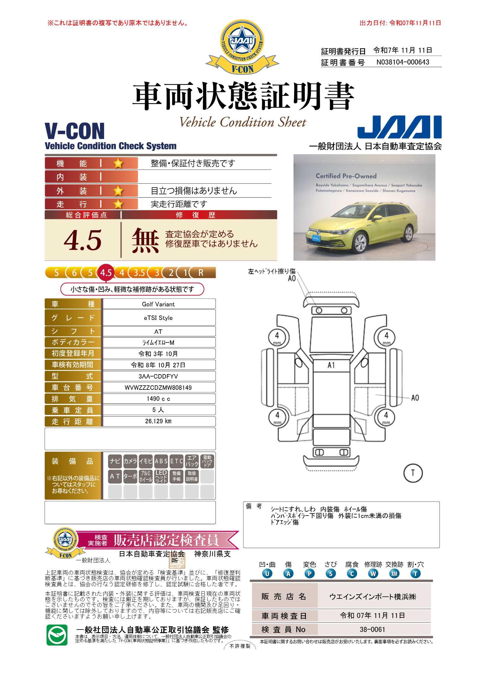 車両保証(ゴルフヴァリアント eTSI スタイル:フォルクスワーゲン湘南鵠沼 ウエインズインポート横浜(株))