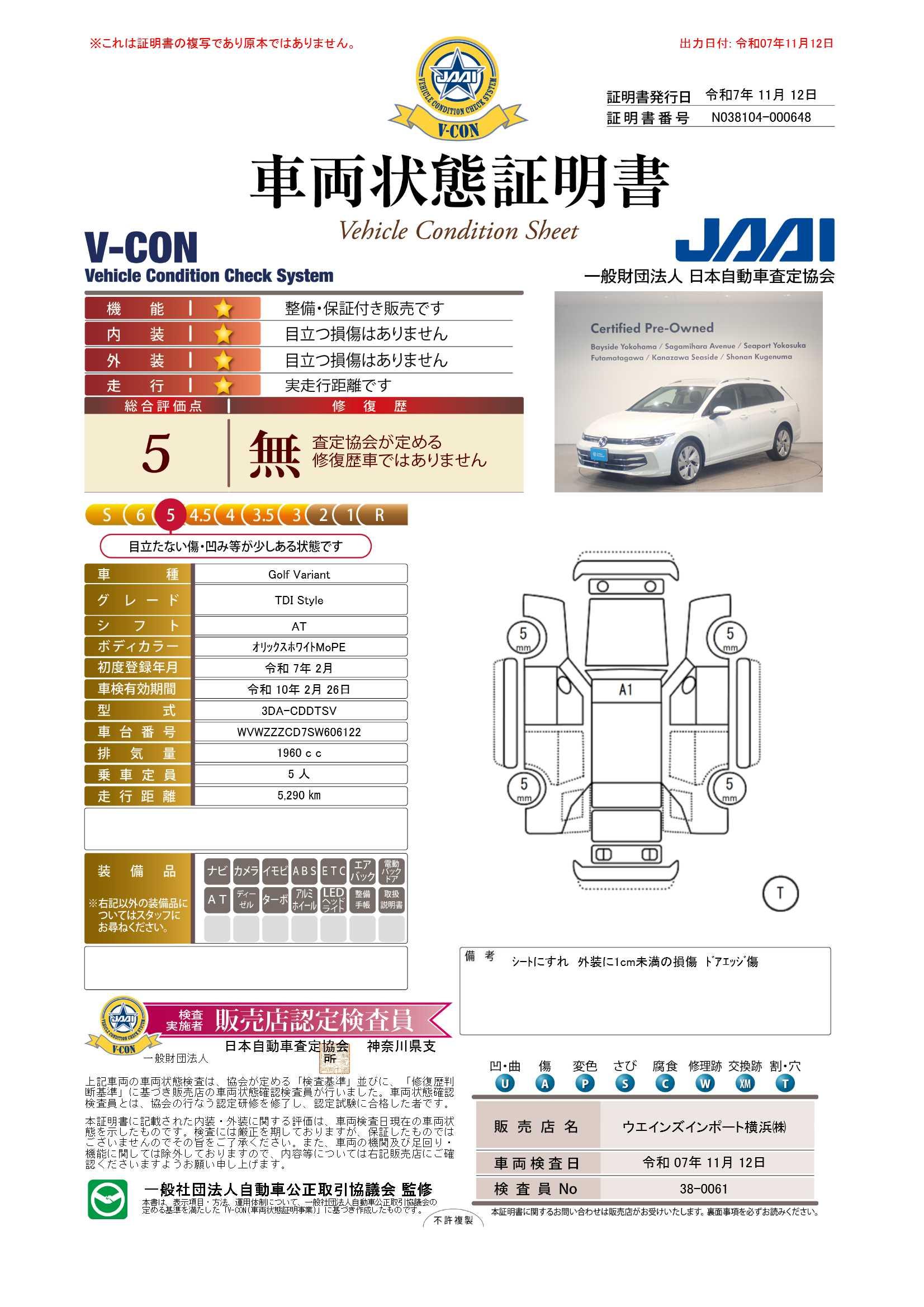 車両保証(ゴルフヴァリアント TDI スタイル:フォルクスワーゲン湘南鵠沼 ウエインズインポート横浜(株))