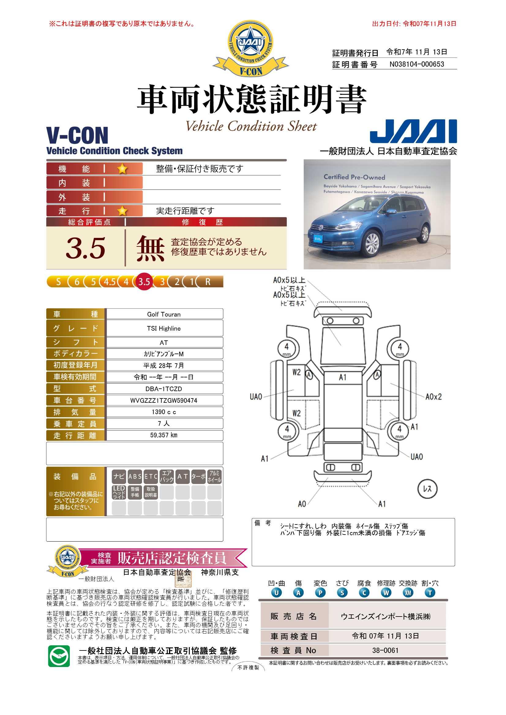 車両保証(ゴルフトゥーラン TSI ハイライン:フォルクスワーゲンベイサイド横浜 ウエインズインポート横浜(株))