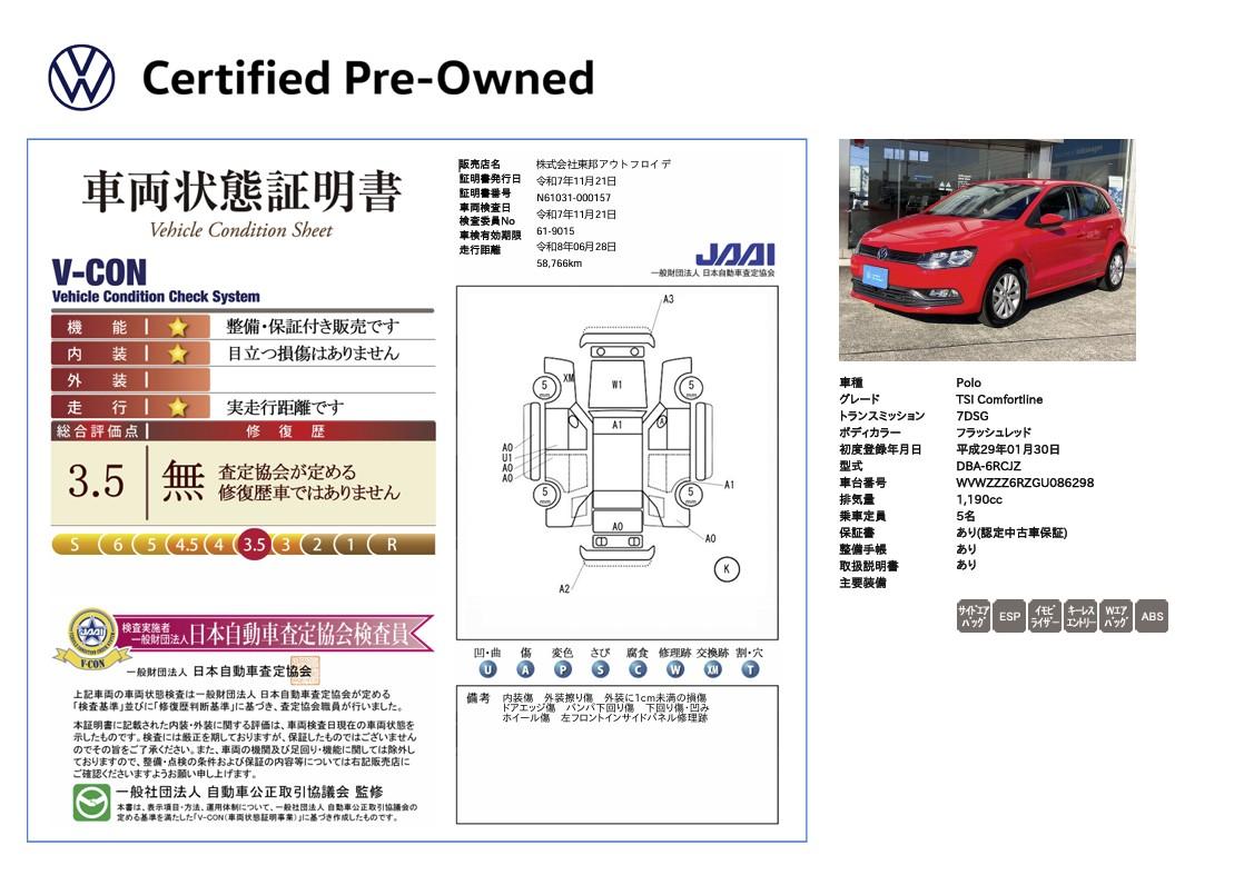 車両保証(ポロ TSIコンフォートライン:Volkswagen奈良中央)