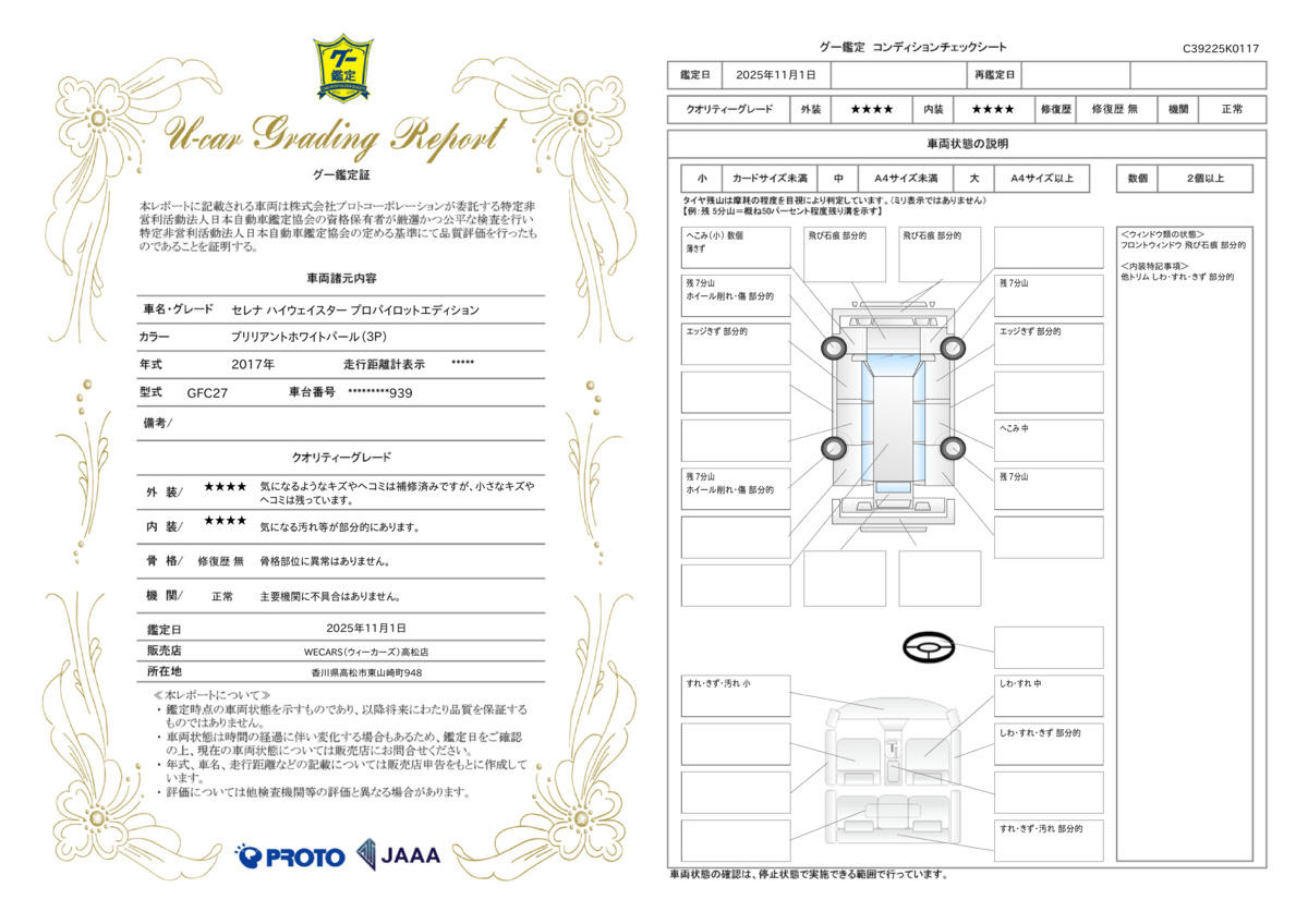 | 車両状態評価書 | ※クリックすると開きます![]() |