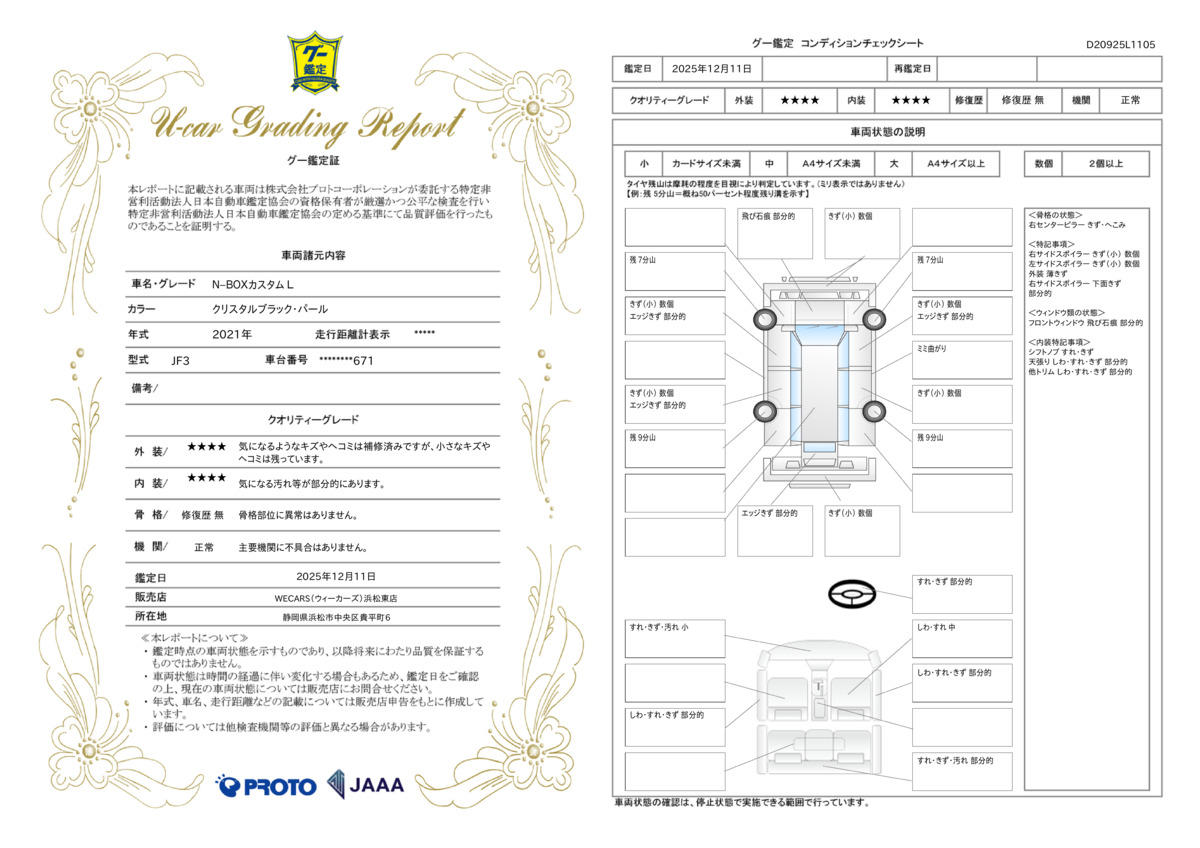 | 車両状態評価書 | ※クリックすると開きます![]() |