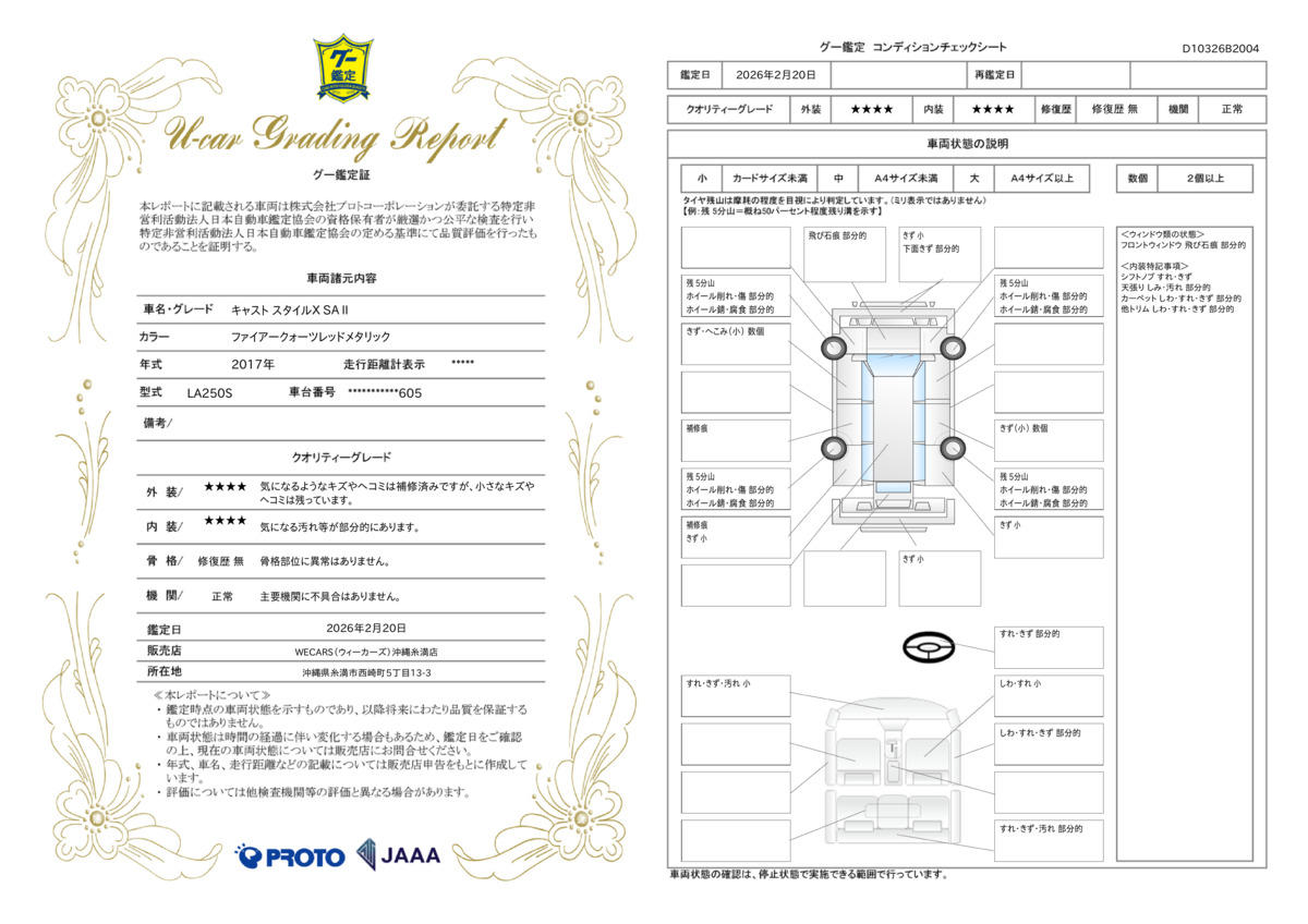 | 車両状態評価書 | ※クリックすると開きます![]() |