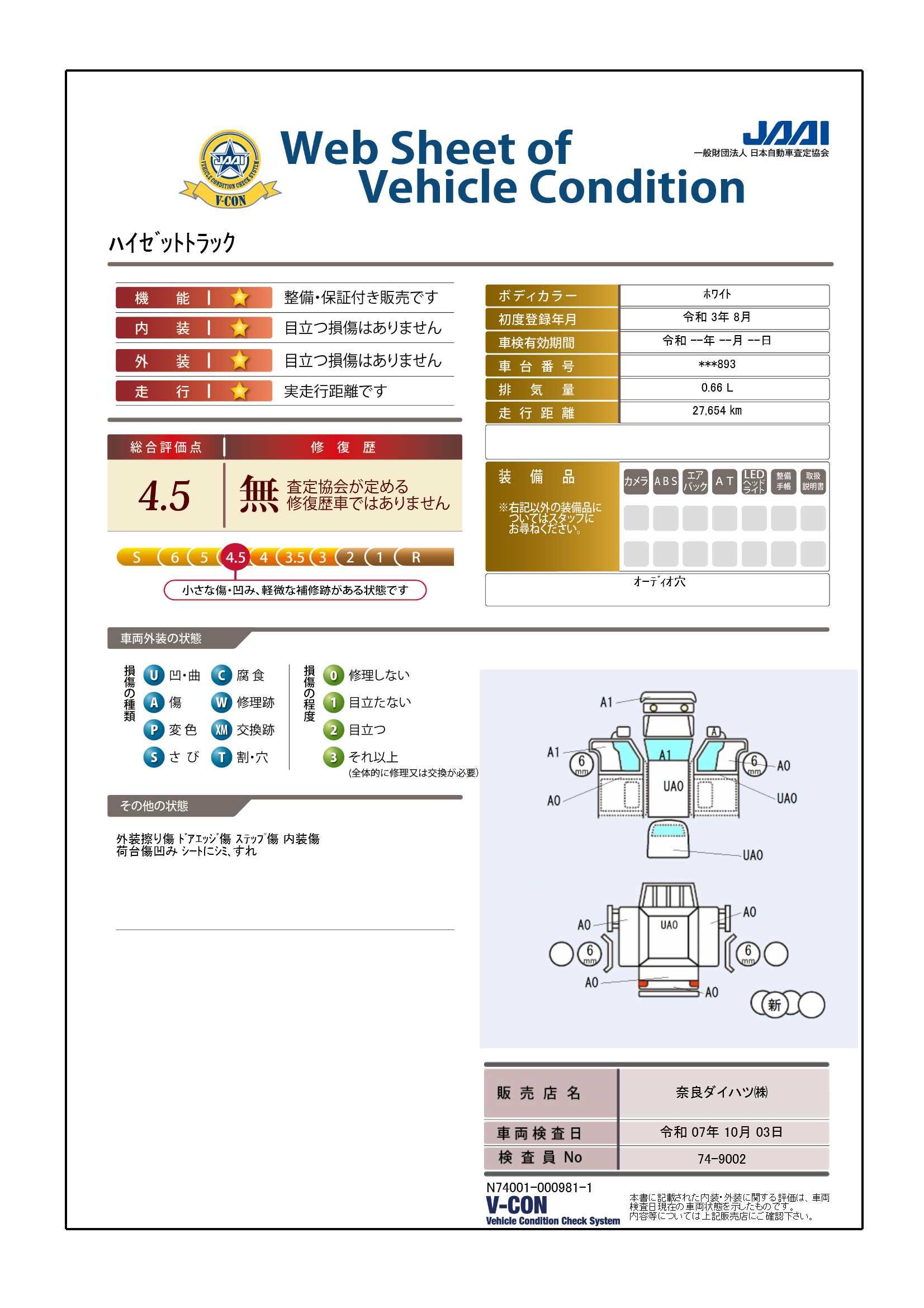 ボディタイプ | 軽トラック | 車台番号下3桁 | 893 |