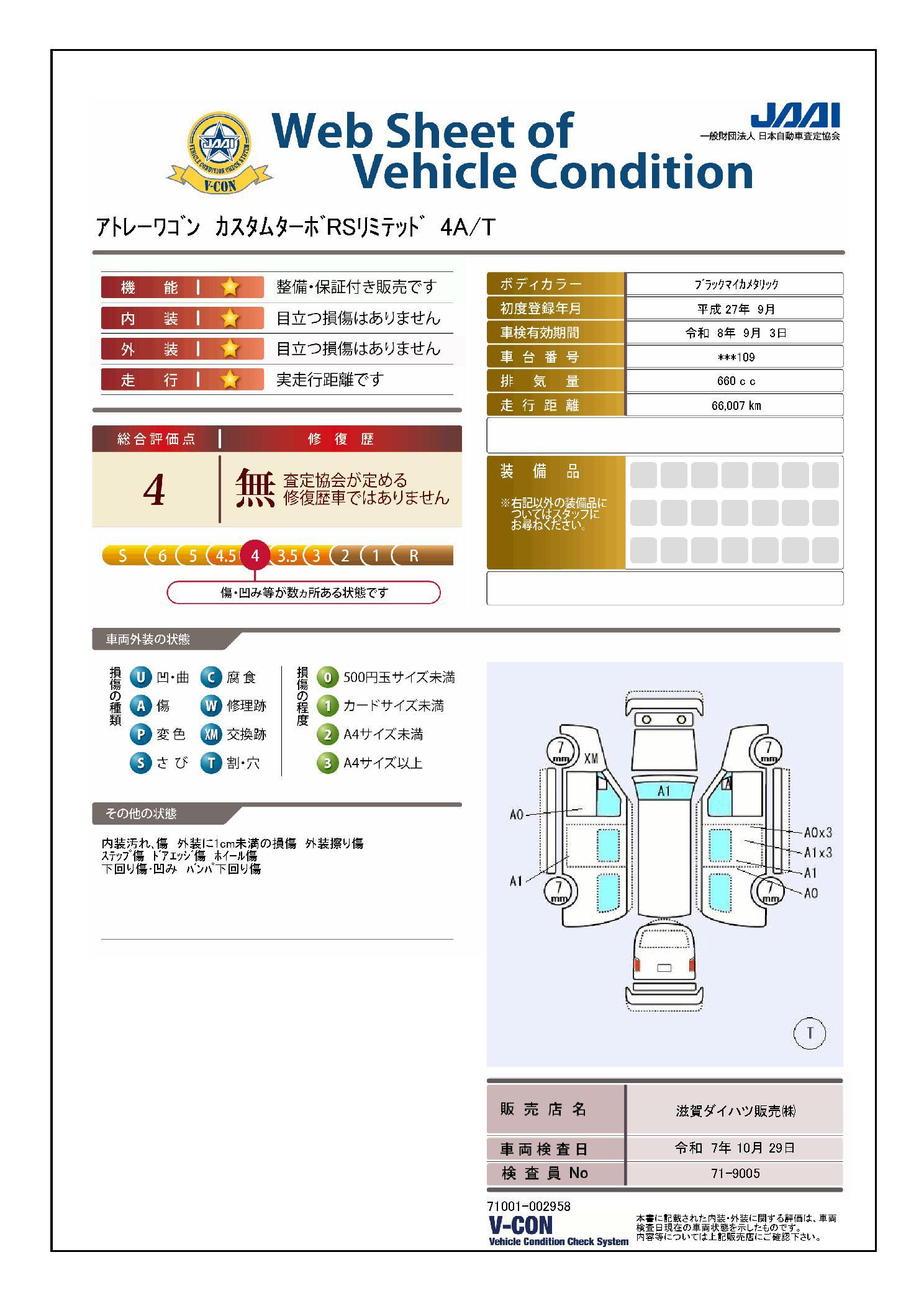 | 車両状態評価書 | ※クリックすると開きます![]() |