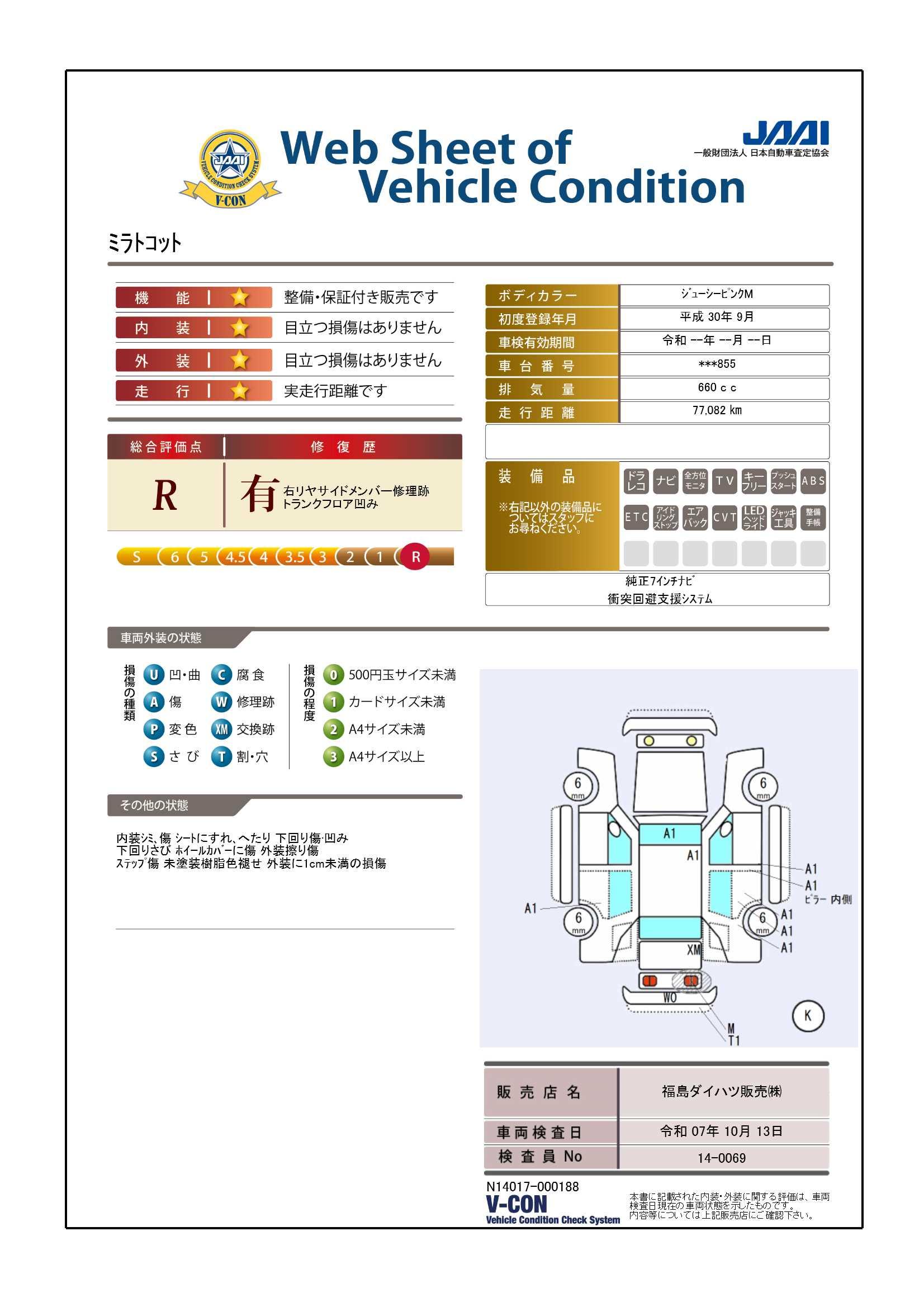 車両保証(ミラトコット G SAIII:福島ダイハツ販売 (株) 本宮まゆみ店)