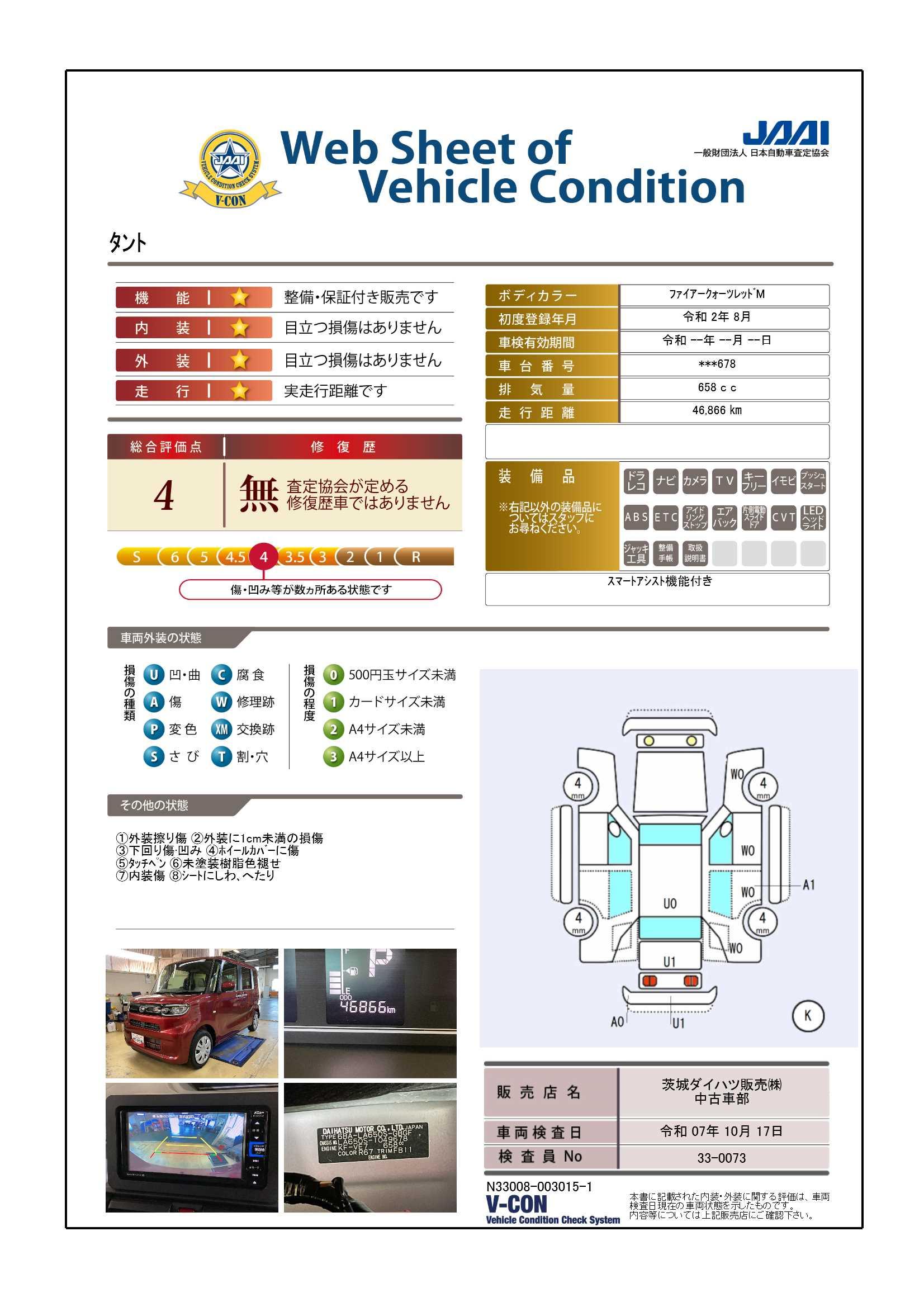 車両保証(タント Xセレクション:茨城ダイハツ販売(株)水戸6号バイパス店)