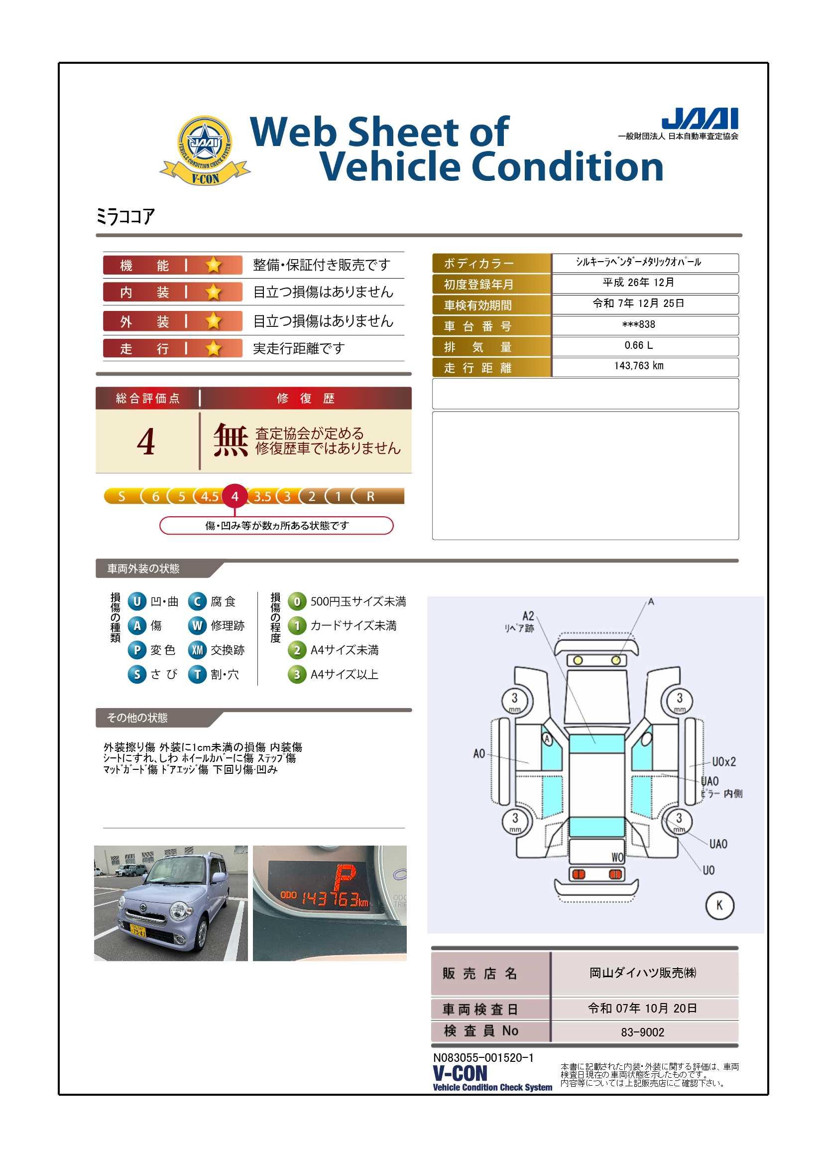 車両状態(ミラココア ココアプラスXスマートセレクションSN)