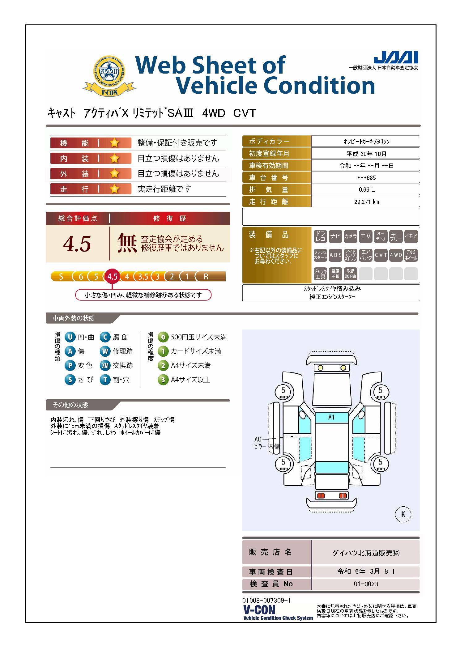 車両保証(キャスト アクティバX リミテッド SAIII:ダイハツ北海道販売株式会社 苫小牧店)