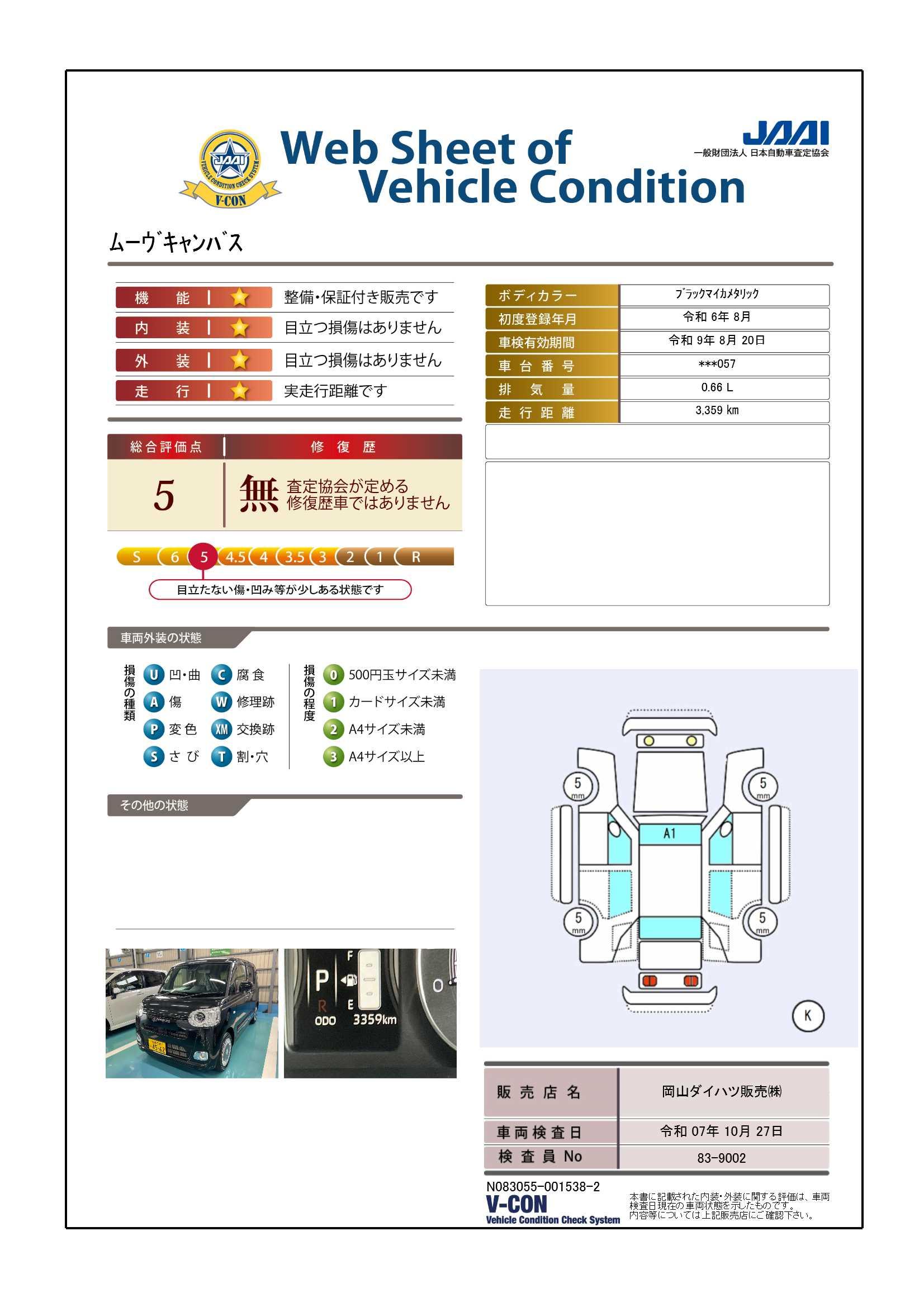 車両状態(ムーヴキャンバス セオリーGターボ)