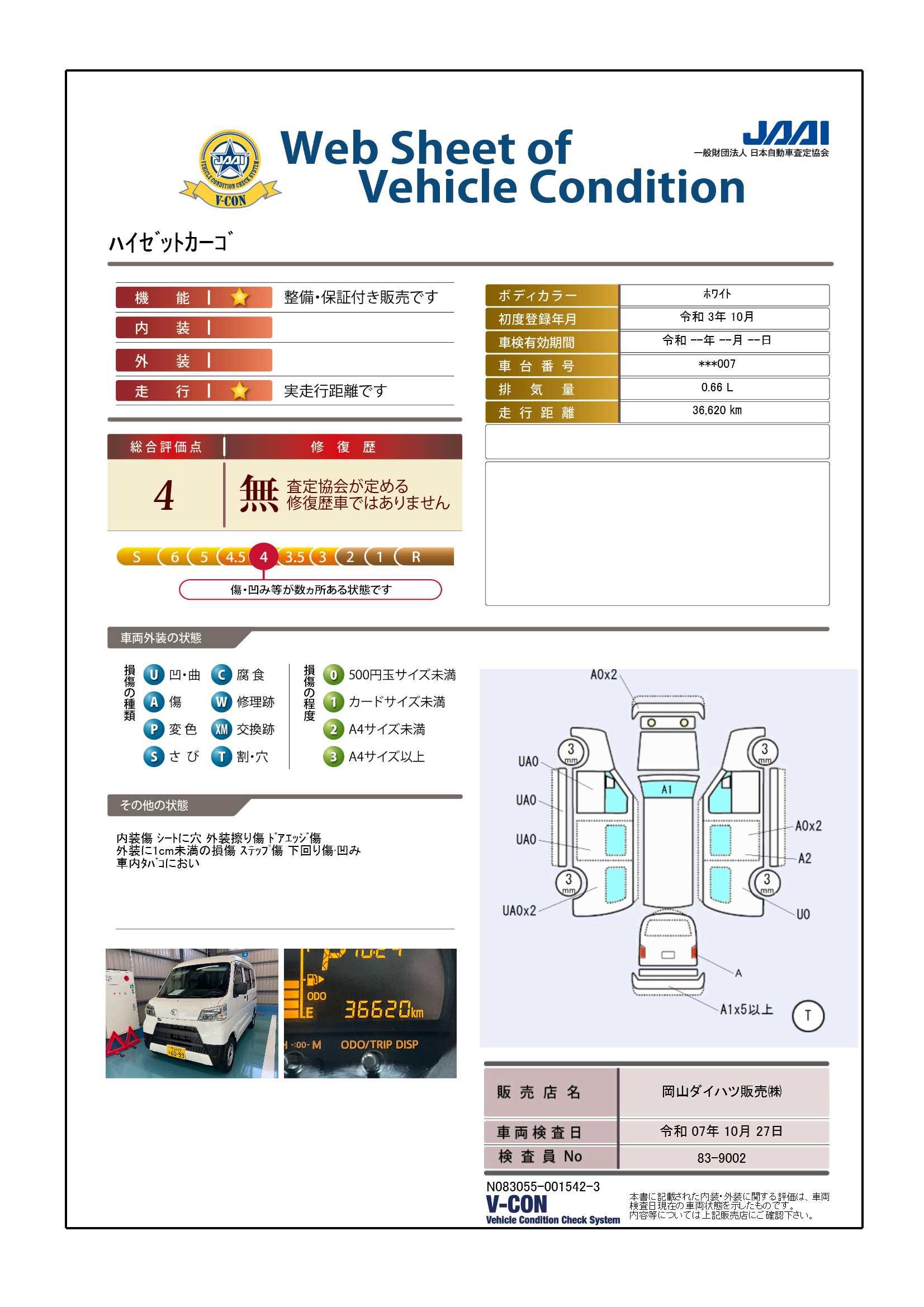 | 車両状態評価書 | ※クリックすると開きます![]() |
