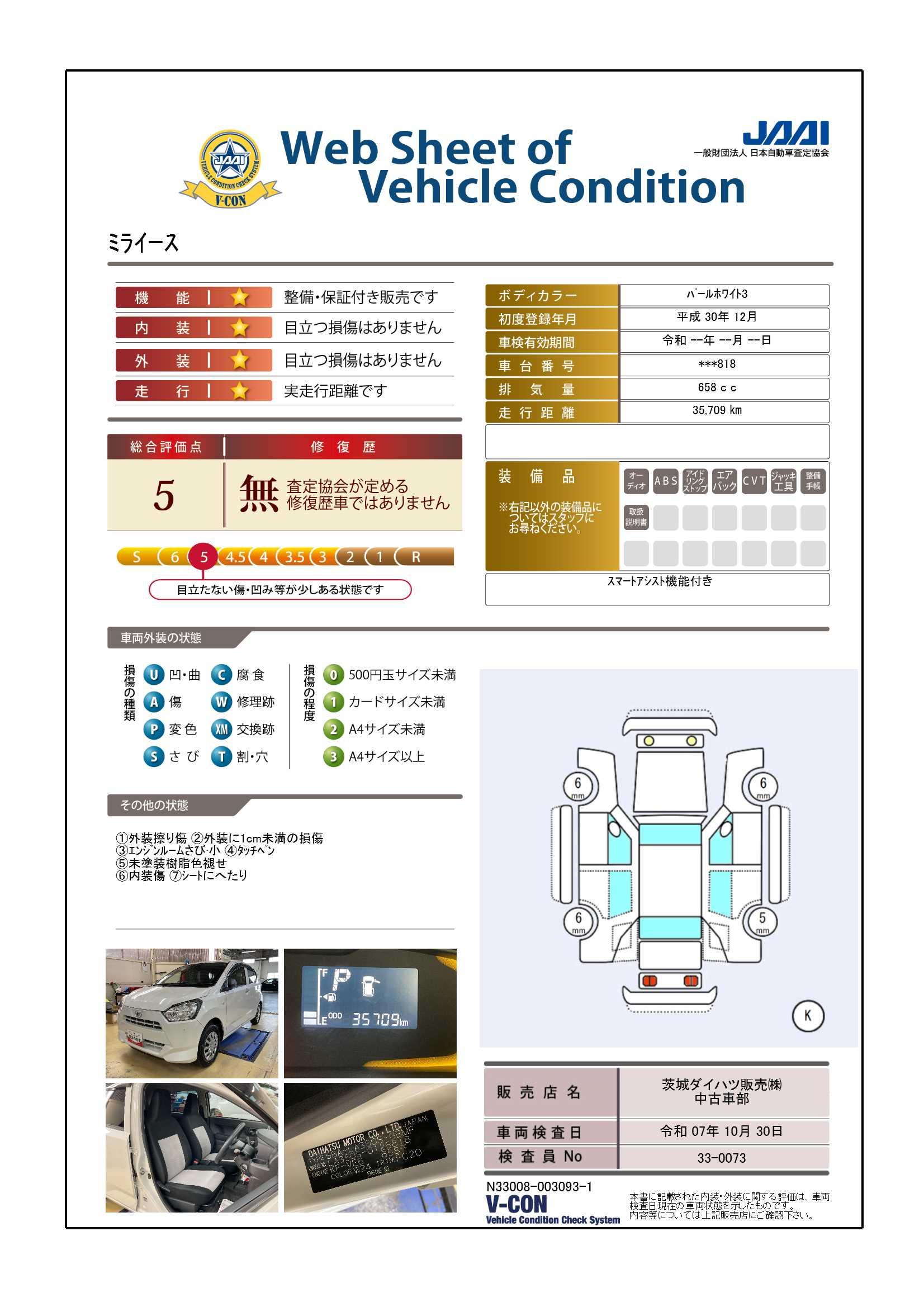 車両保証(ミライース L SAIII:茨城ダイハツ販売(株)水戸6号バイパス店)