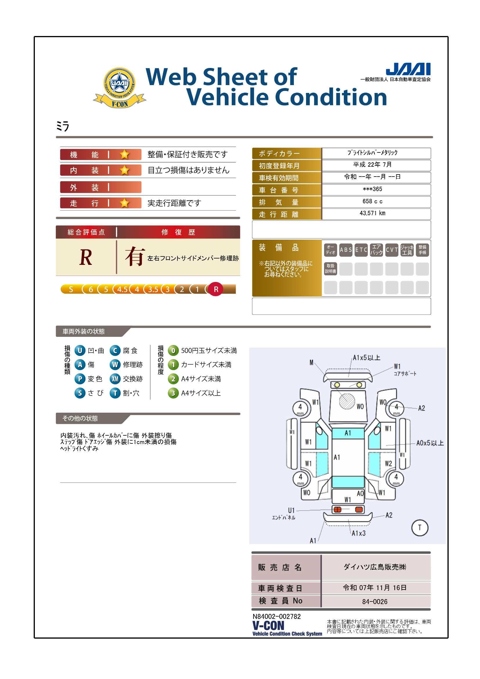 | 車両状態評価書 | ※クリックすると開きます![]() |