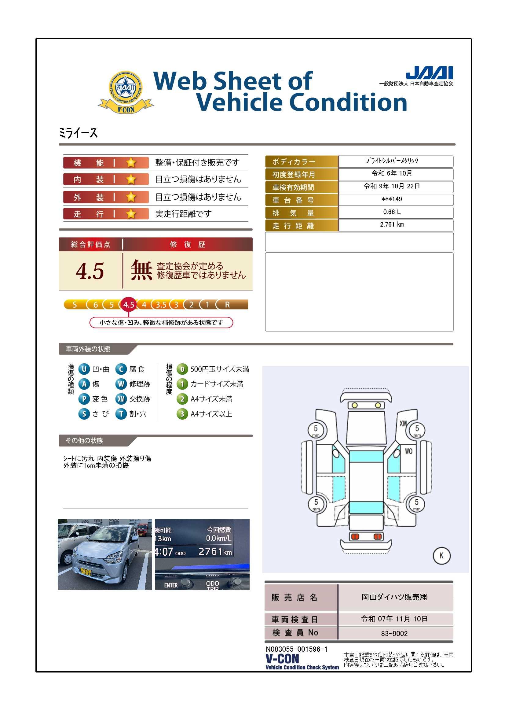 車両保証(ミライース G SAIII:岡山ダイハツ販売株式会社 鴨方店)