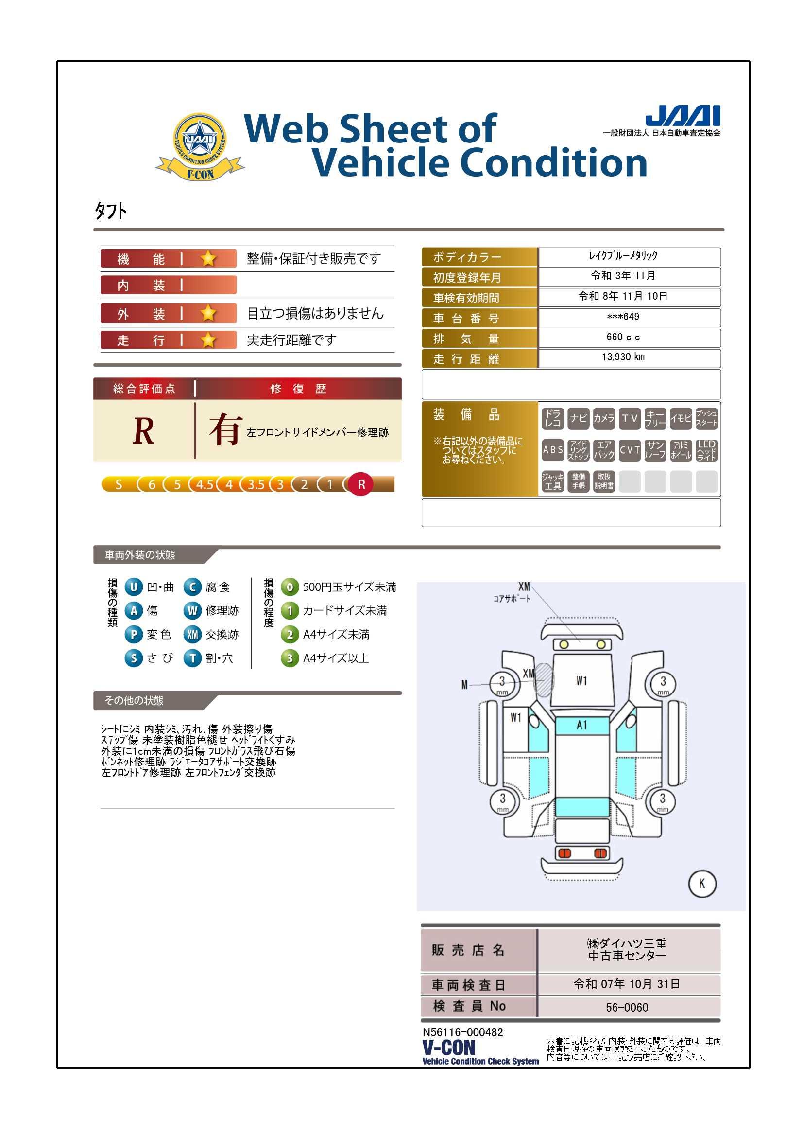 | 車両状態評価書 | ※クリックすると開きます![]() |
