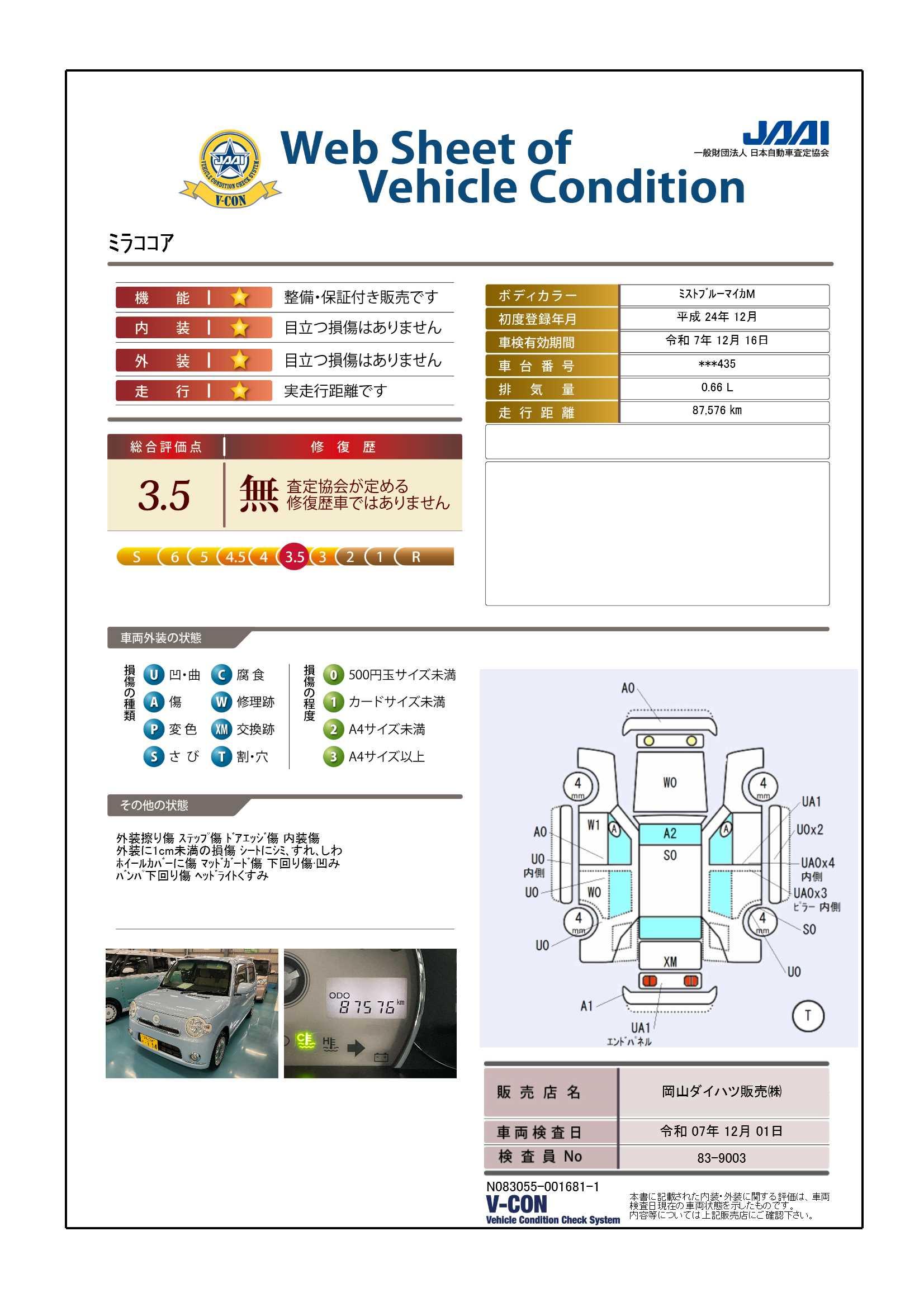 | 車両状態評価書 | ※クリックすると開きます![]() |