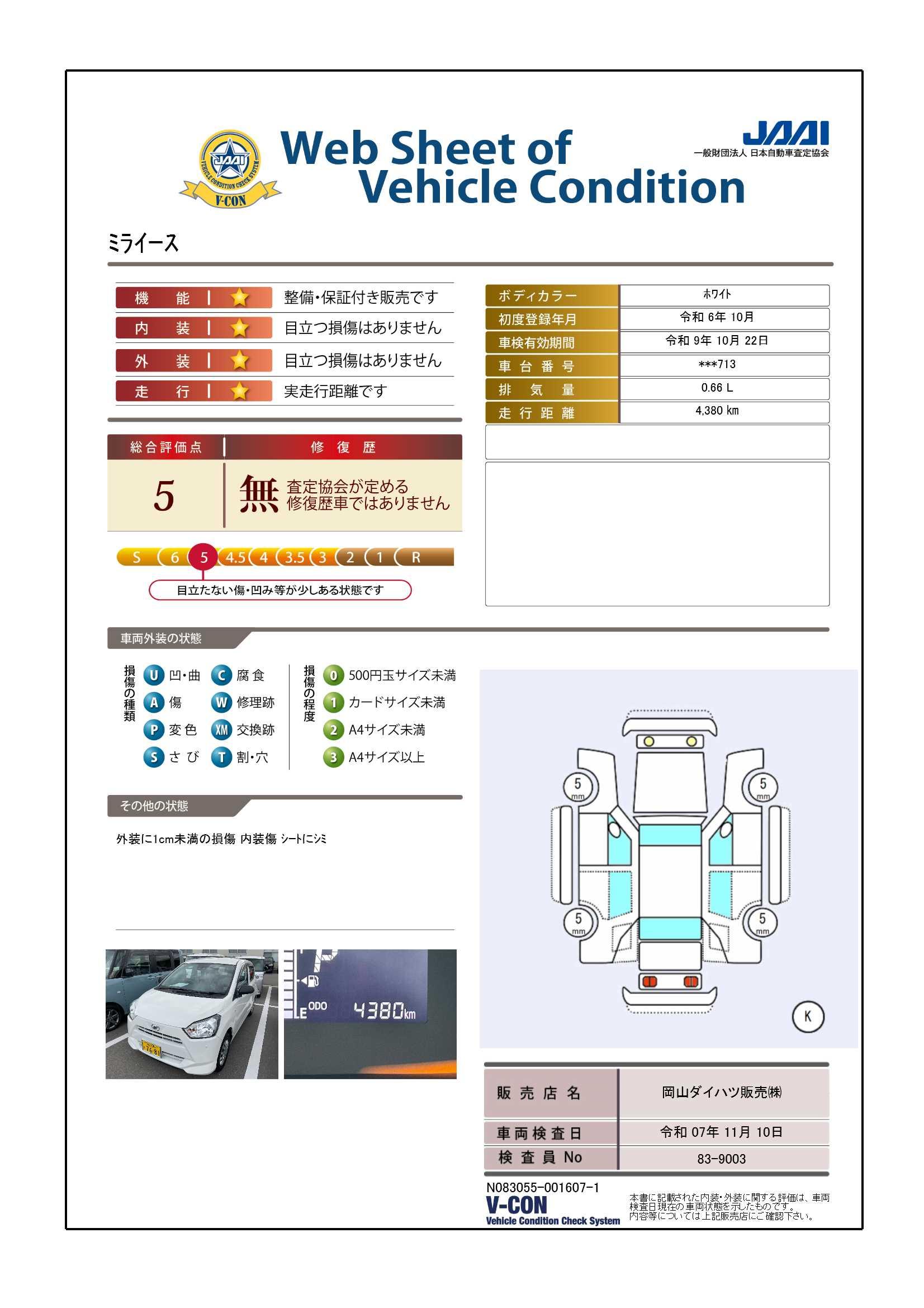 車両保証(ミライース L SAIII:岡山ダイハツ販売株式会社 吉備路店)