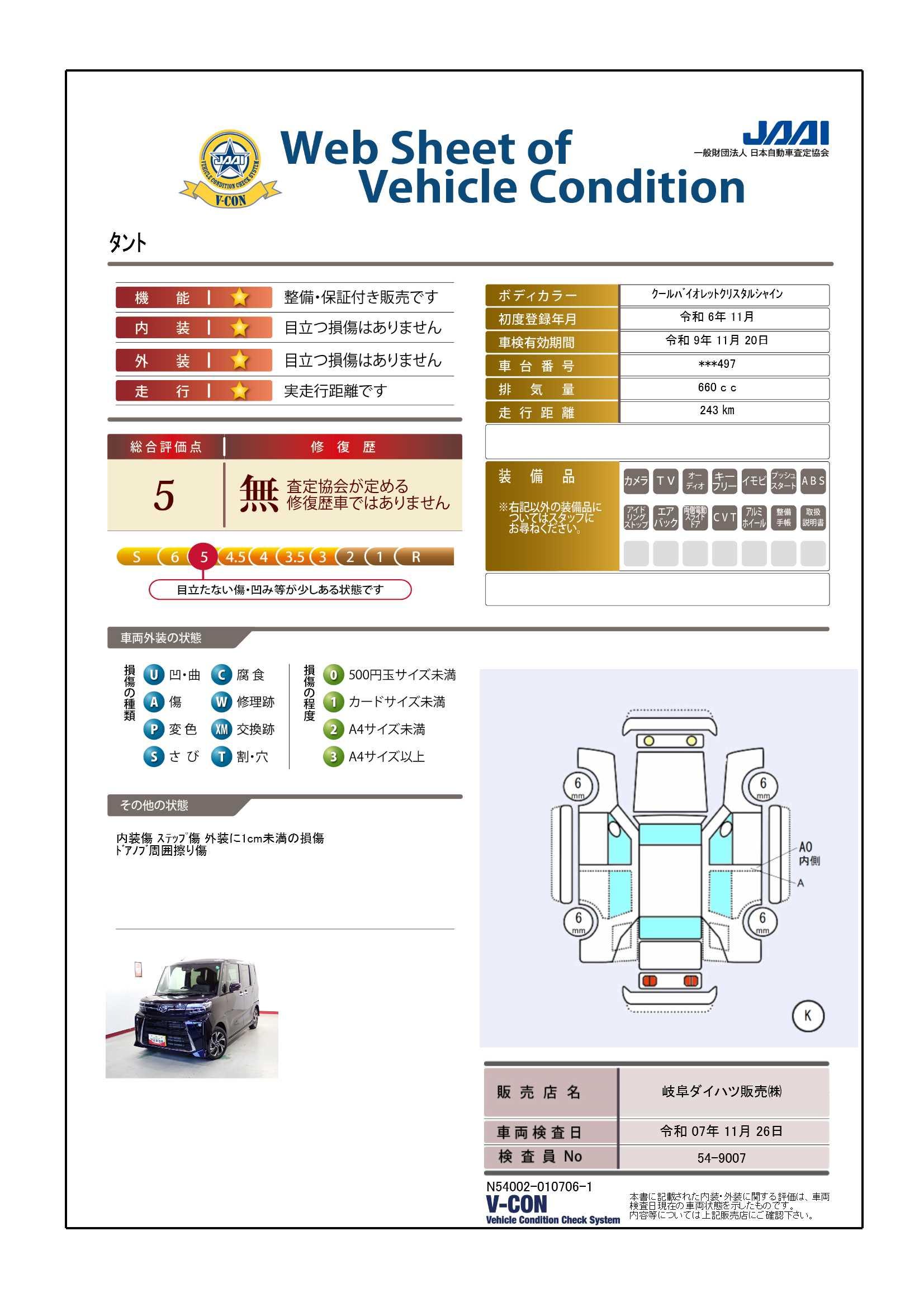 | 車両状態評価書 | ※クリックすると開きます![]() |