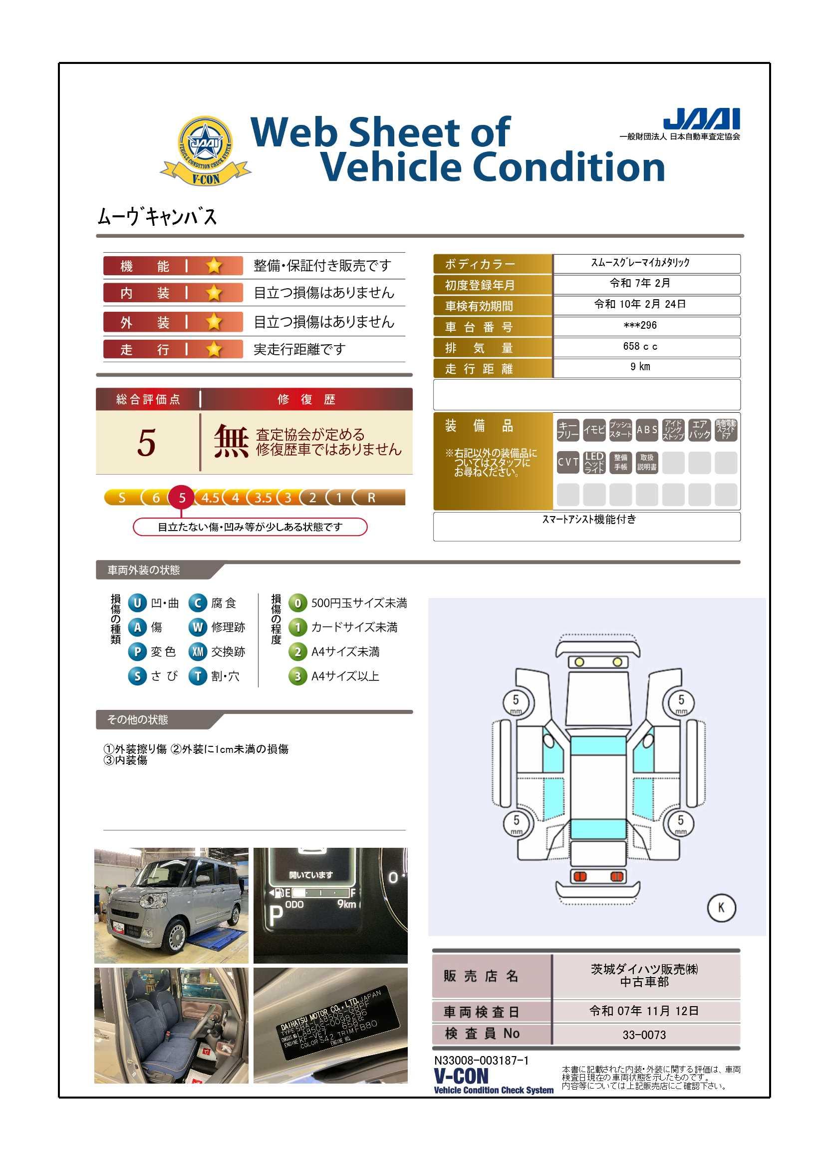 | 車両状態評価書 | ※クリックすると開きます![]() |