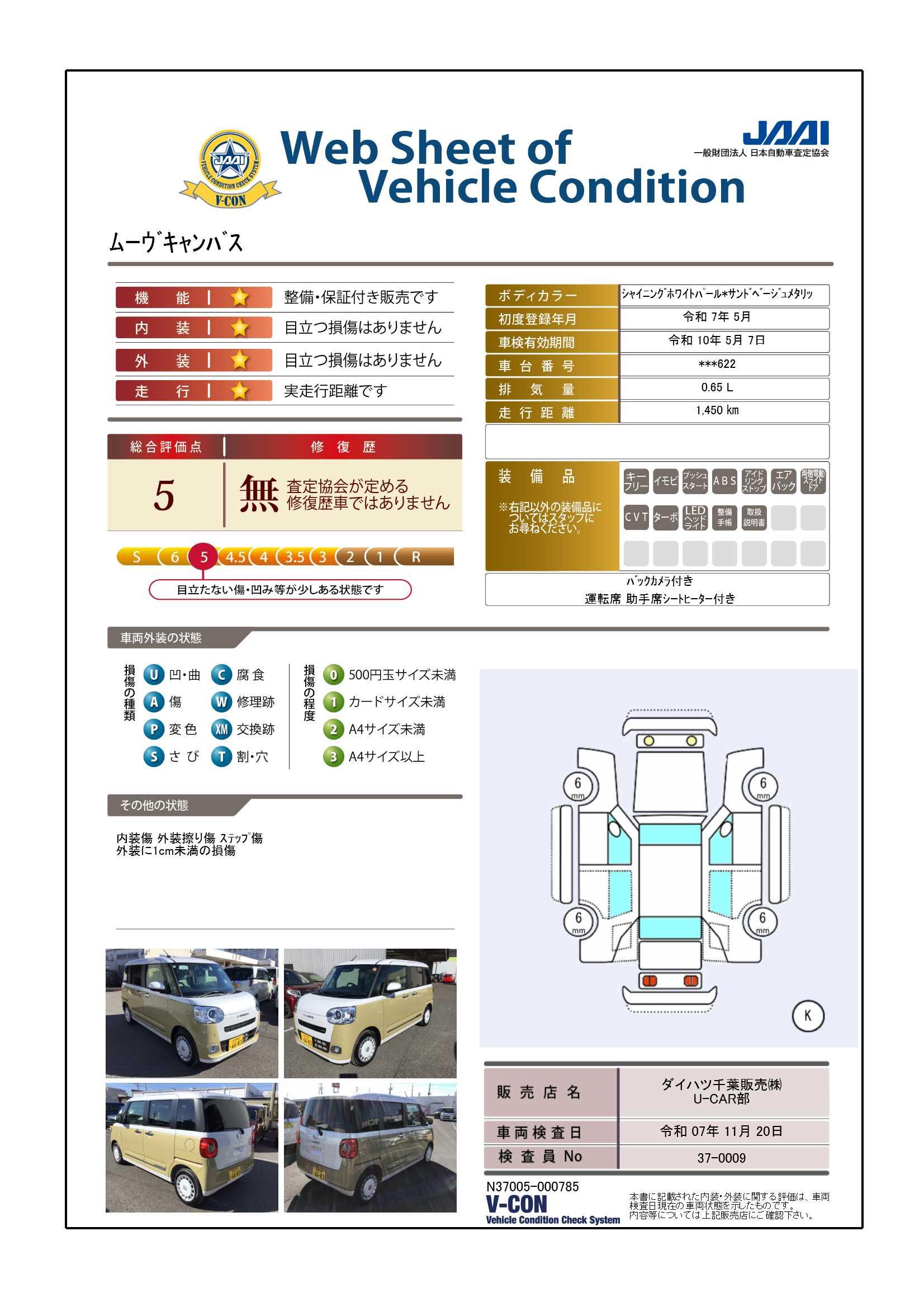 車両状態(ムーヴキャンバス ストライプスGターボ)