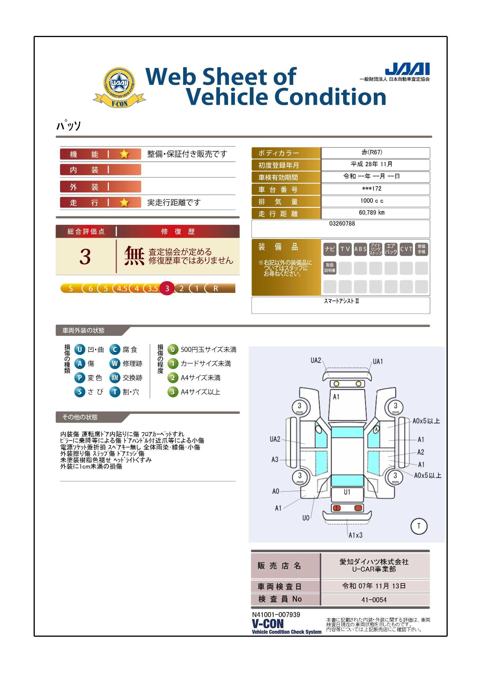 車両保証(パッソ X S:愛知ダイハツ株式会社 U-CAR安城店)