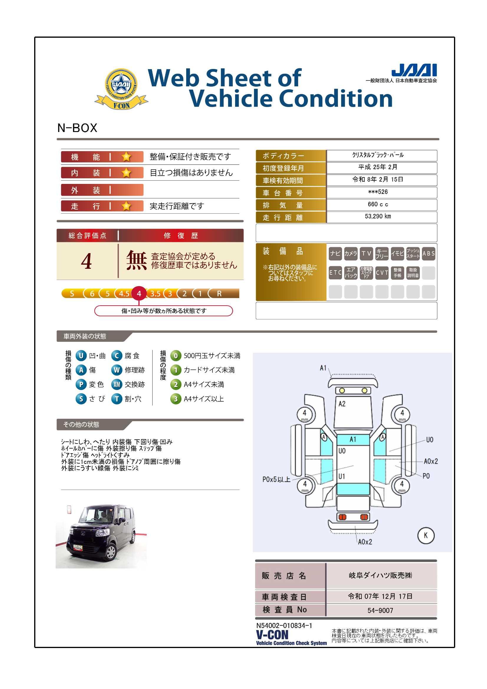 | 車両状態評価書 | ※クリックすると開きます![]() |