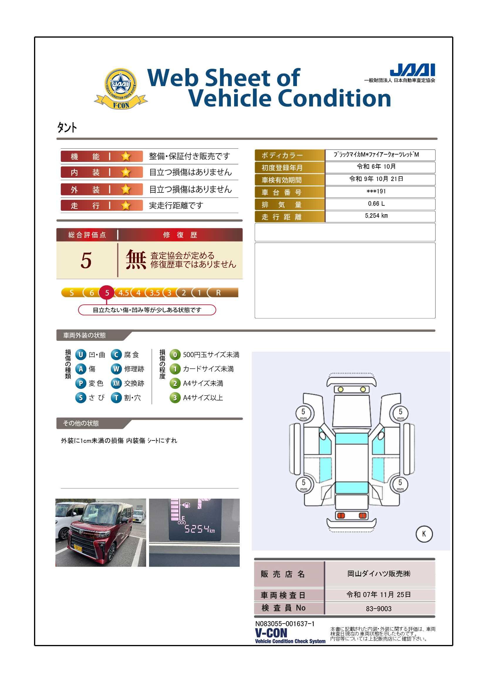 | 車両状態評価書 | ※クリックすると開きます![]() |