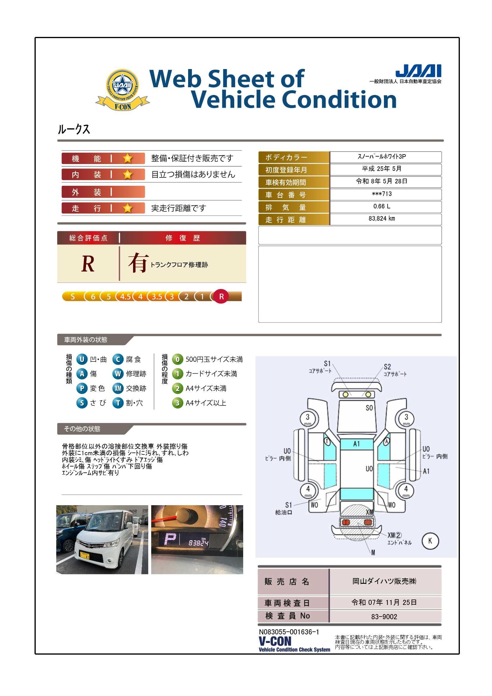 | 車両状態評価書 | ※クリックすると開きます![]() |