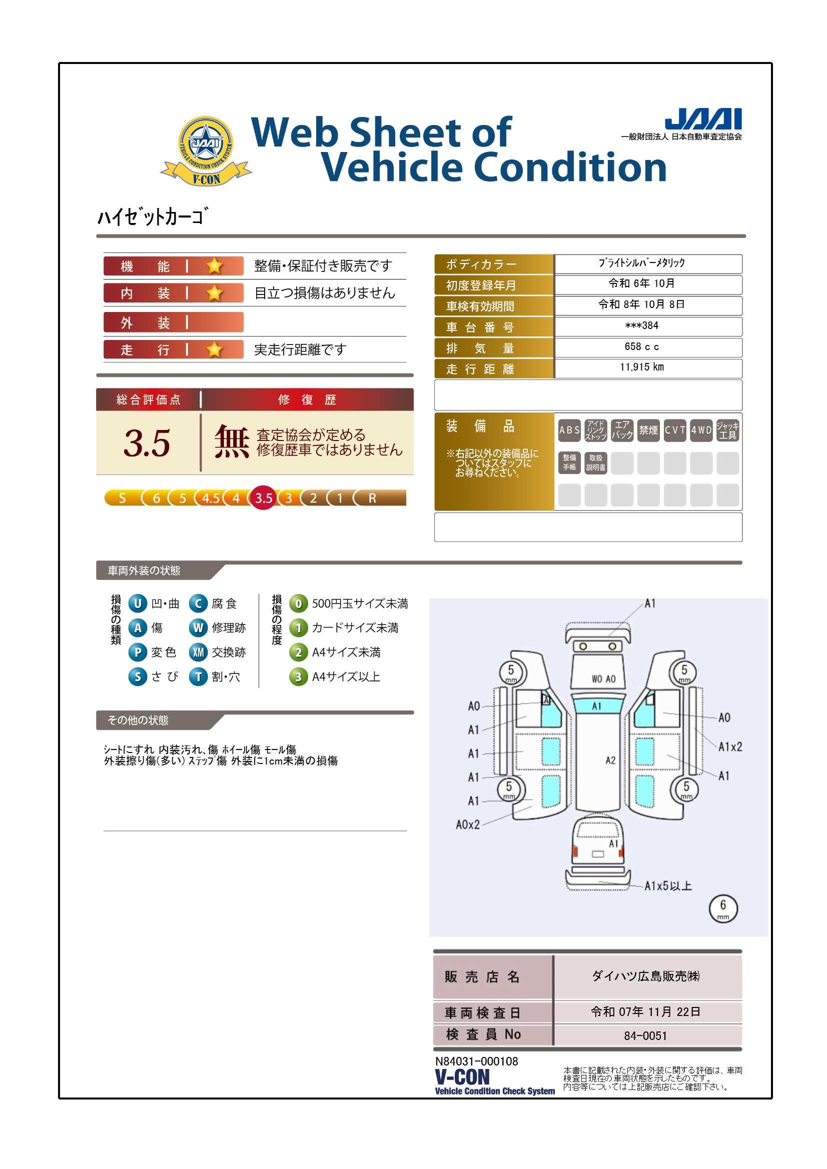| 車両状態評価書 | ※クリックすると開きます![]() |