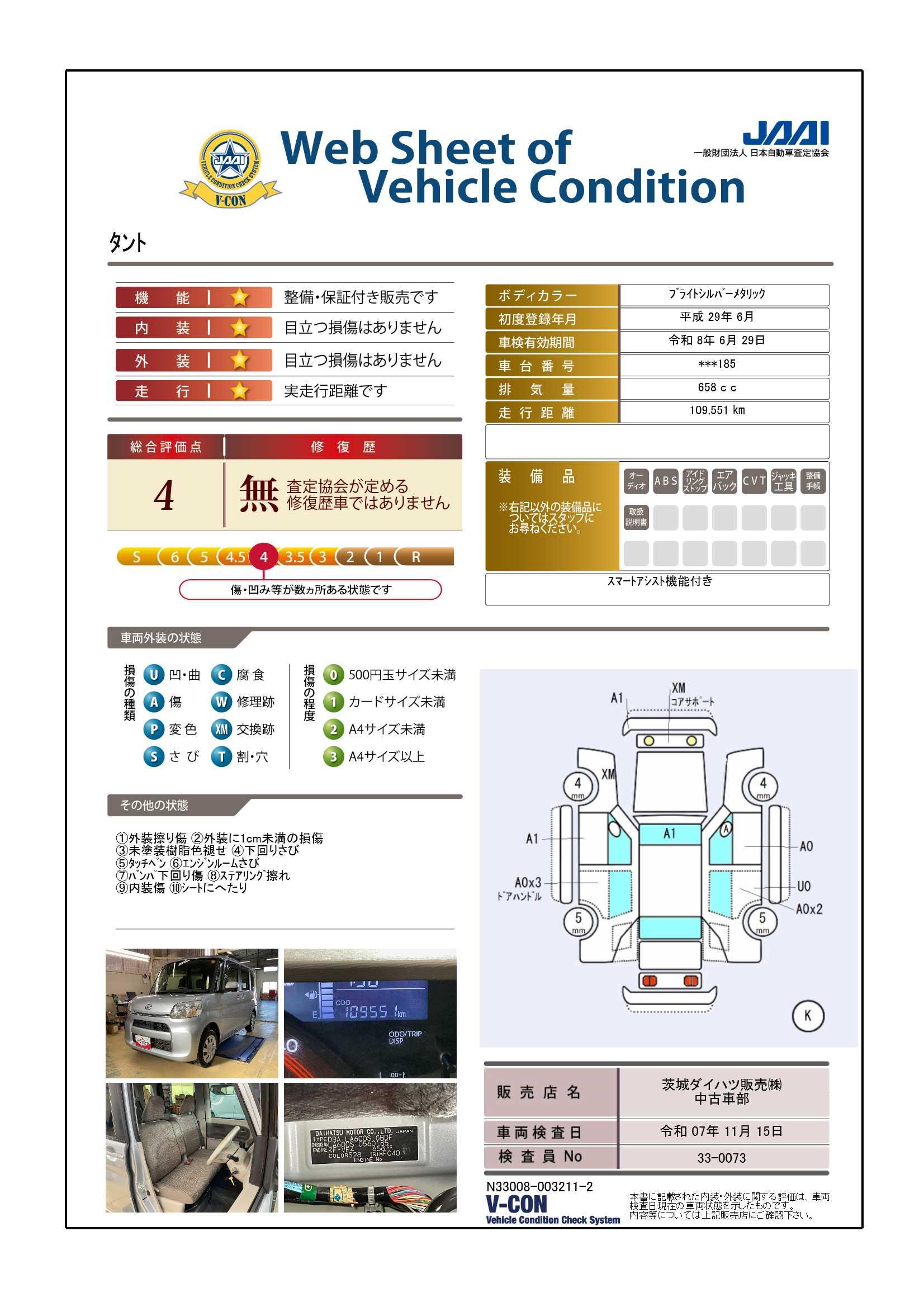 車両保証(タント L SAIII:茨城ダイハツ販売(株)水戸6号バイパス店)