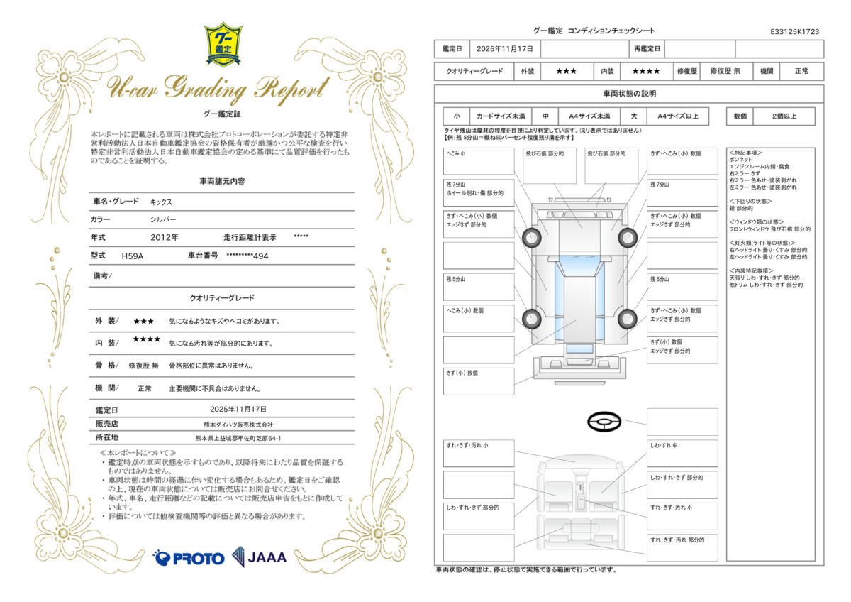 | 車両状態評価書 | ※クリックすると開きます![]() |