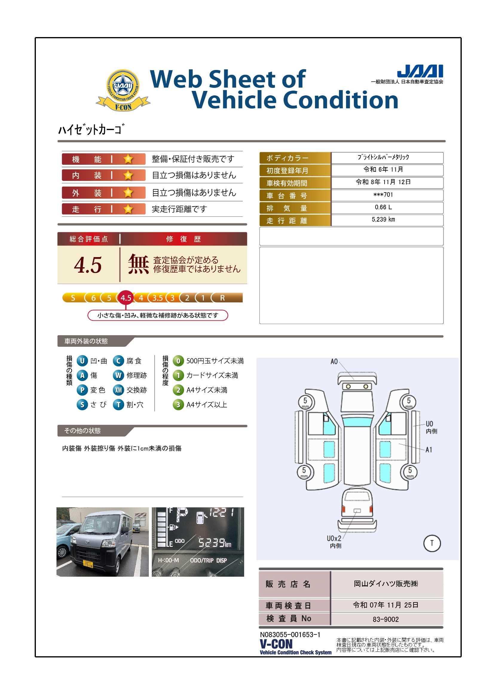 車両状態(ハイゼットカーゴ スペシャル)