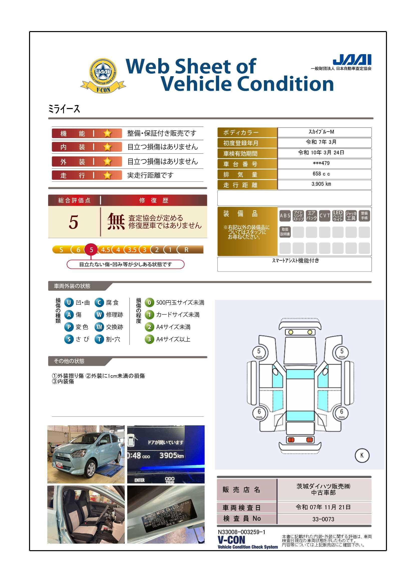 車両保証(ミライース X SAIII:茨城ダイハツ販売(株)神栖店)