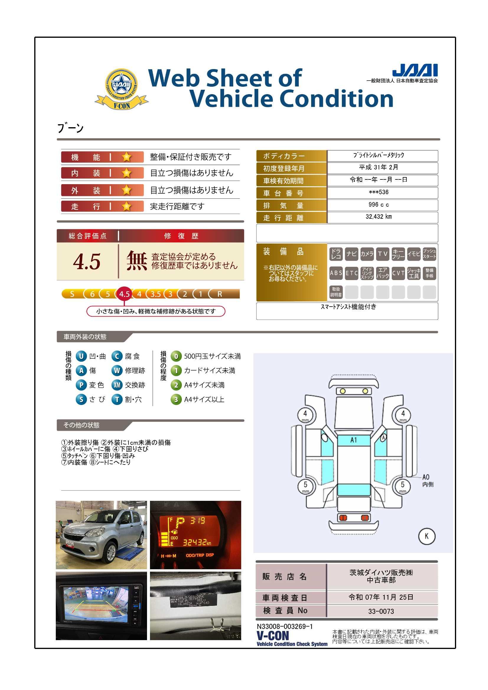 | 車両状態評価書 | ※クリックすると開きます![]() |