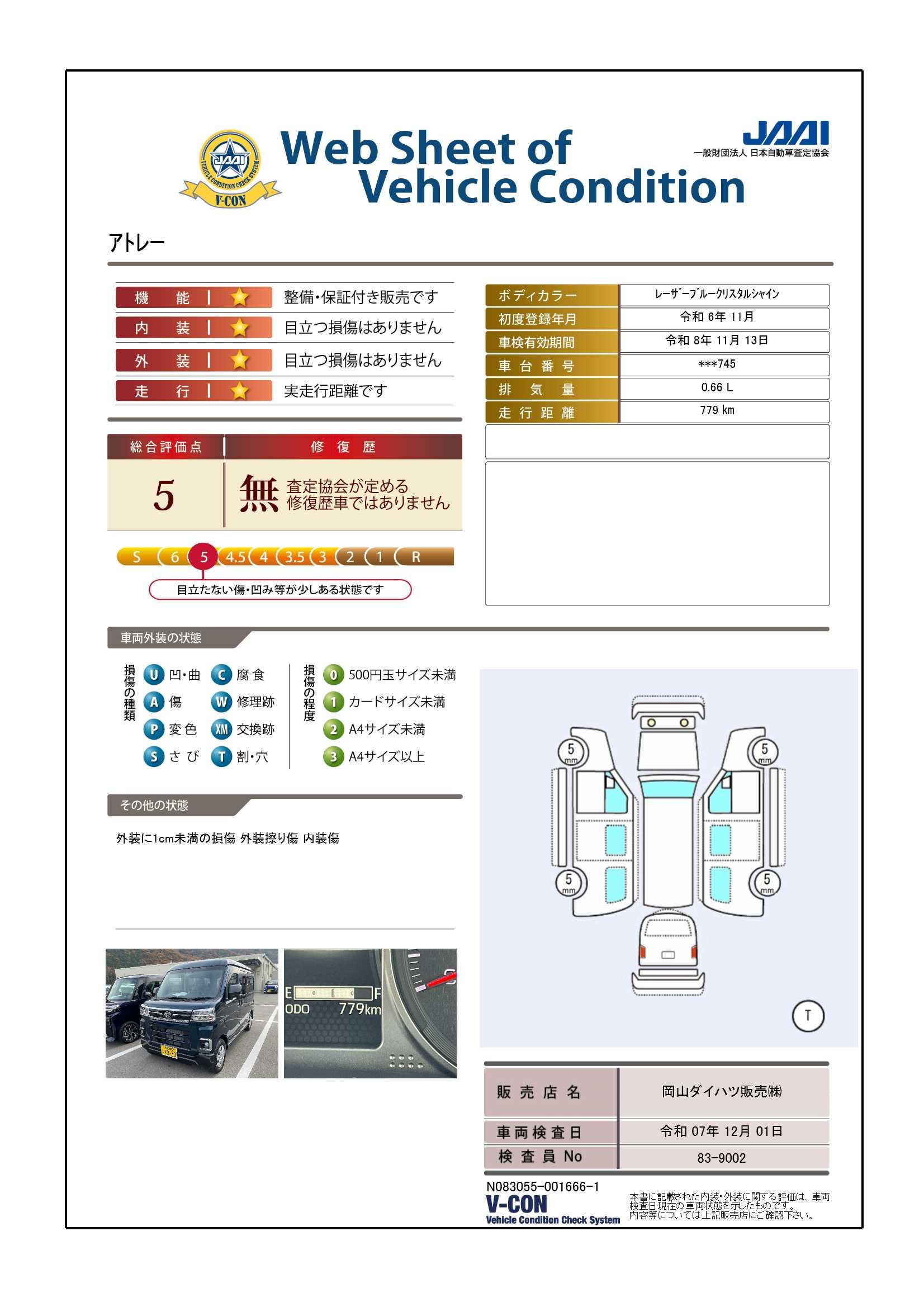 | 車両状態評価書 | ※クリックすると開きます![]() |