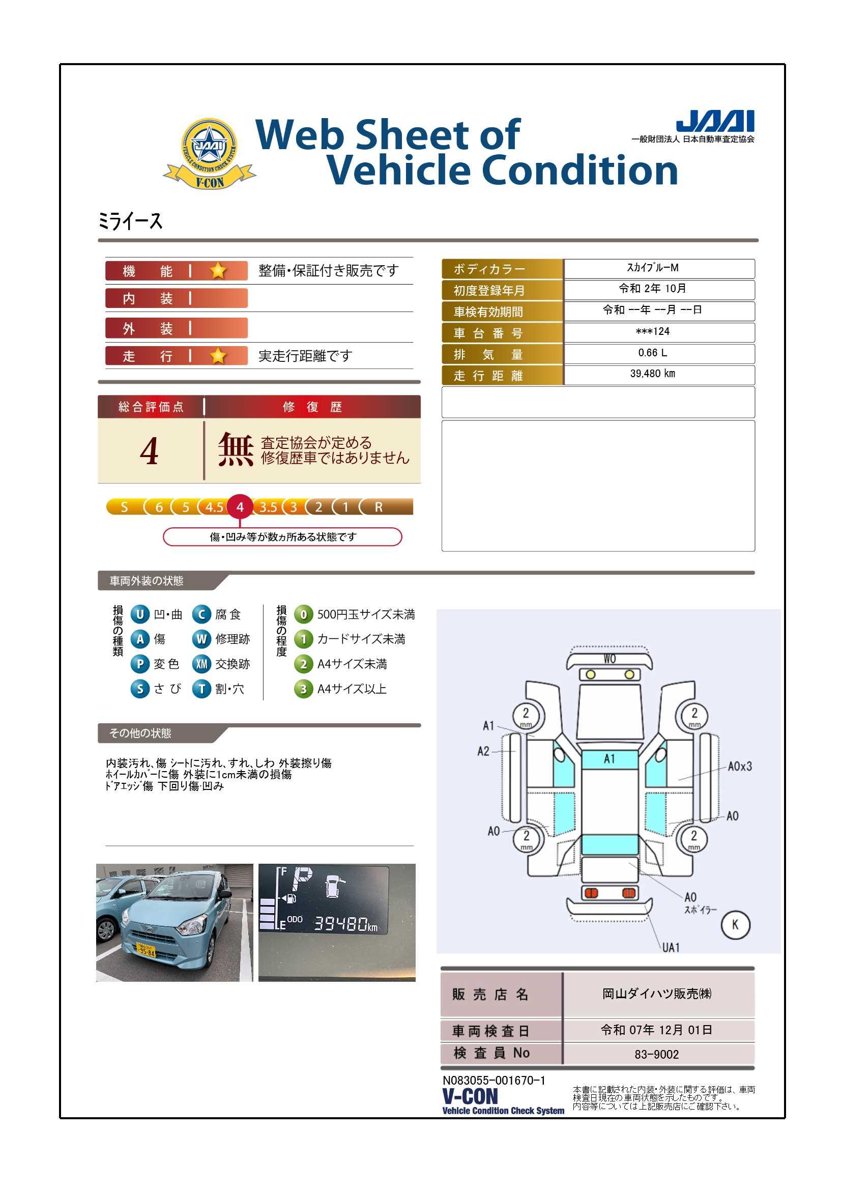 車両保証(ミライース L SAIII:岡山ダイハツ販売株式会社 WEB展示場岡山)