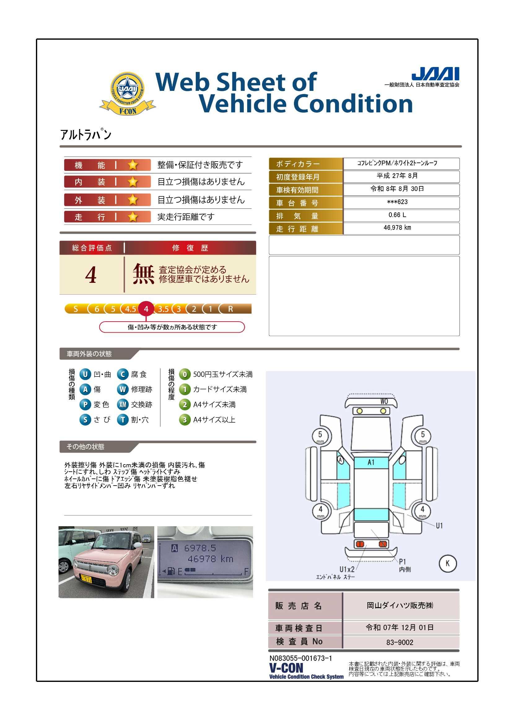 | 車両状態評価書 | ※クリックすると開きます![]() |