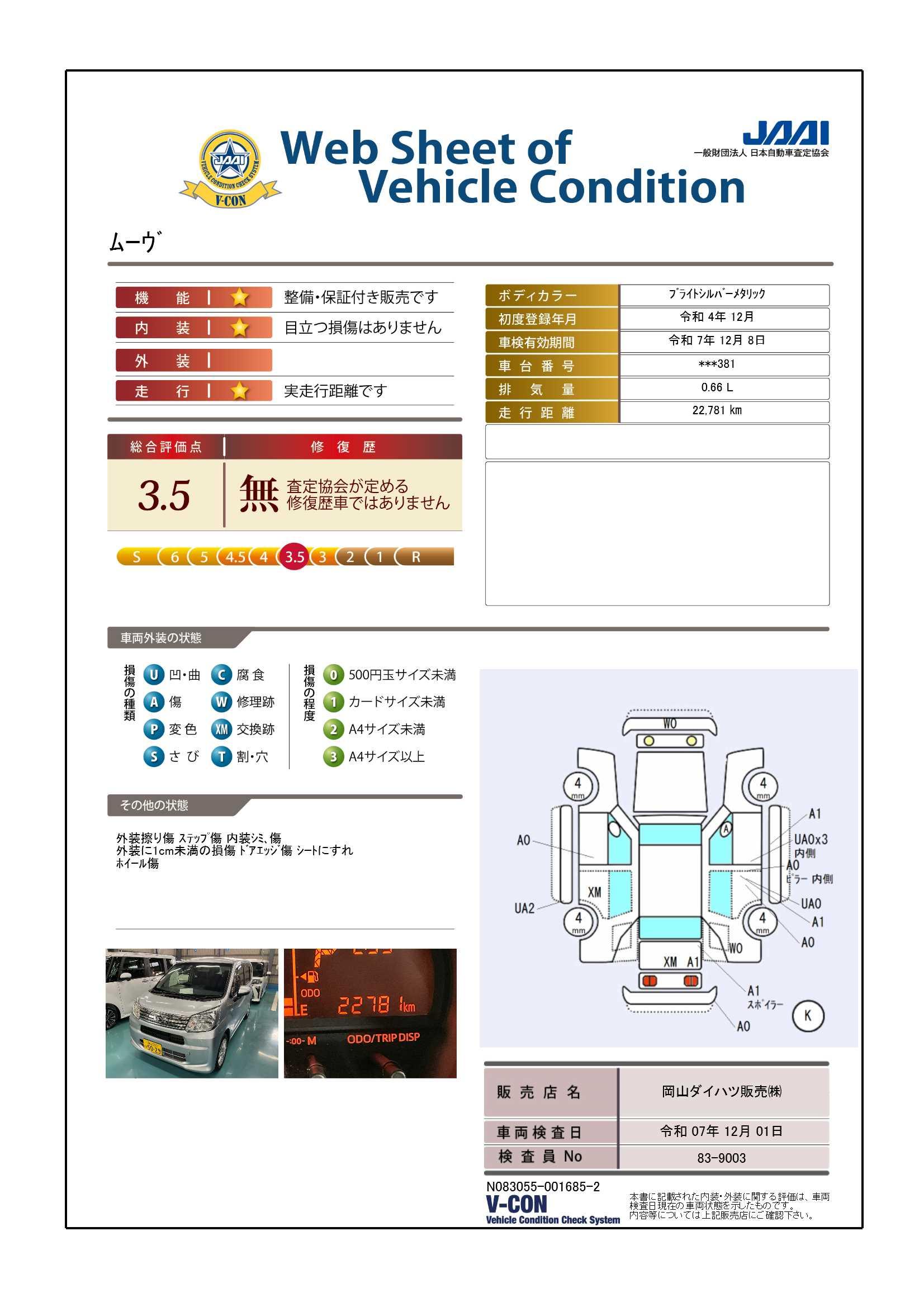| 車両状態評価書 | ※クリックすると開きます![]() |