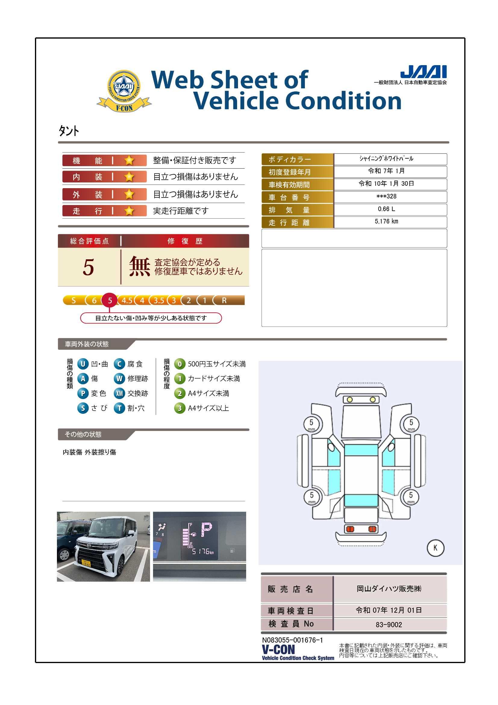 車両保証(タント カスタムRS:岡山ダイハツ販売株式会社 WEB展示場岡山)